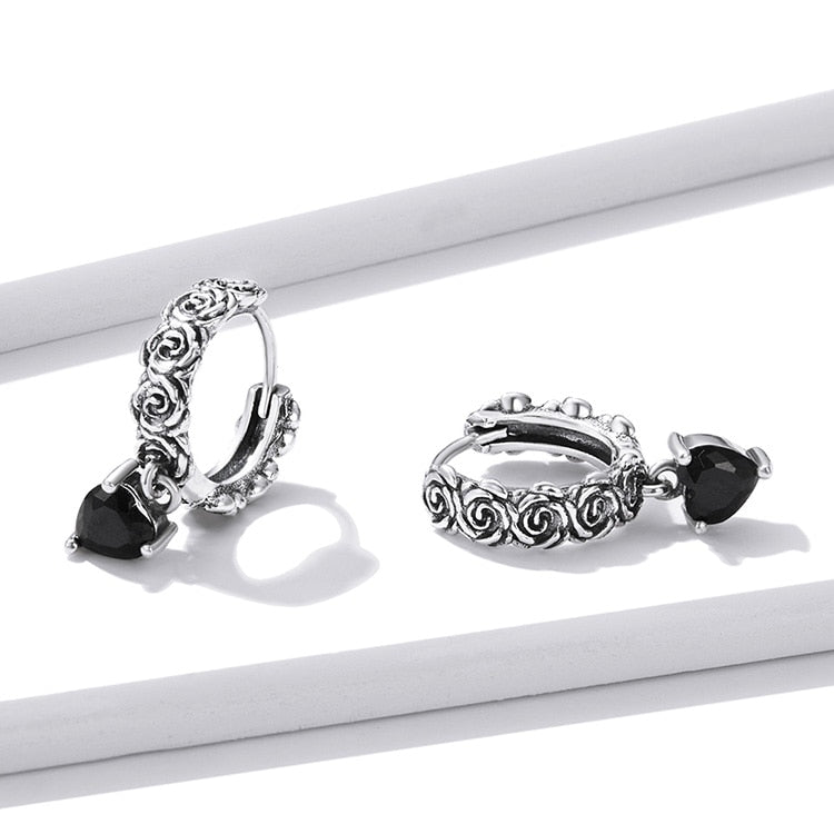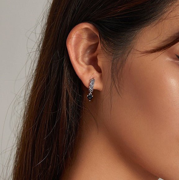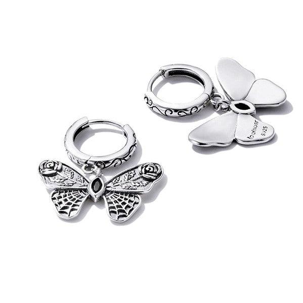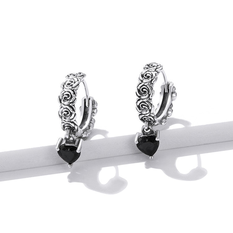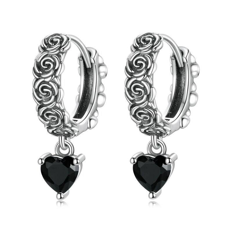 Mystery, adventure, and unique punk style await with these exquisite gothic earrings from Black Diamonds New York. Expertly crafted from 92.5 percent pure silver and 7.5 percent high-quality hypoallergenic metals, each earring features a captivating heart-shaped diamond and roses, a butterfly and coffin cross-inspired design. Discover your dark side with these mysterious and affordable earrings!