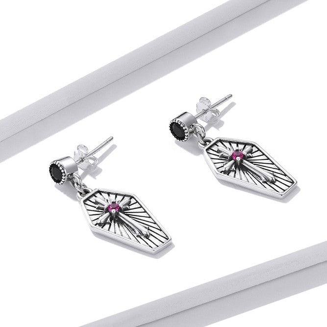 Mysterious Rose Butterfly & Coffin Gothic Earrings