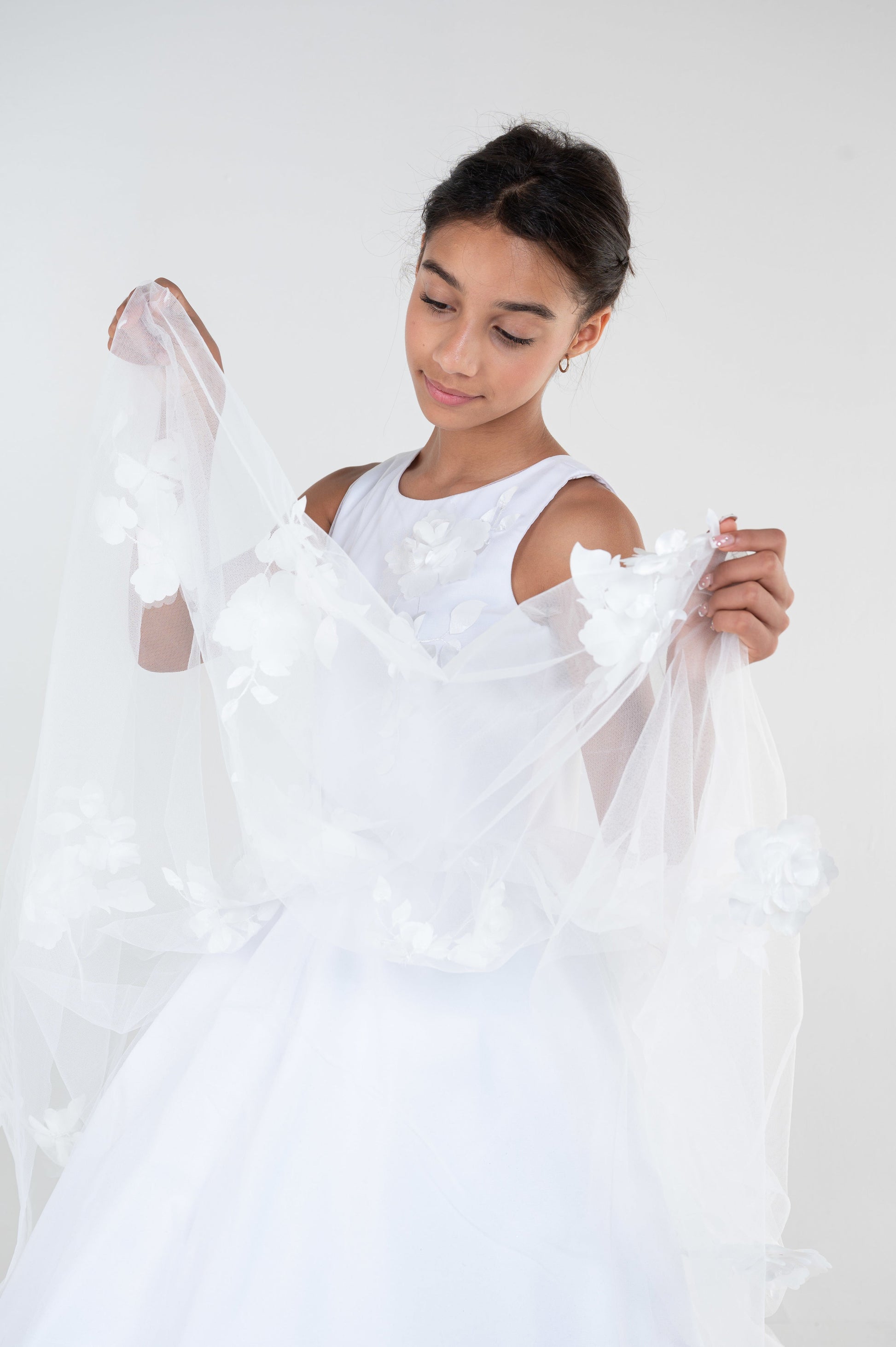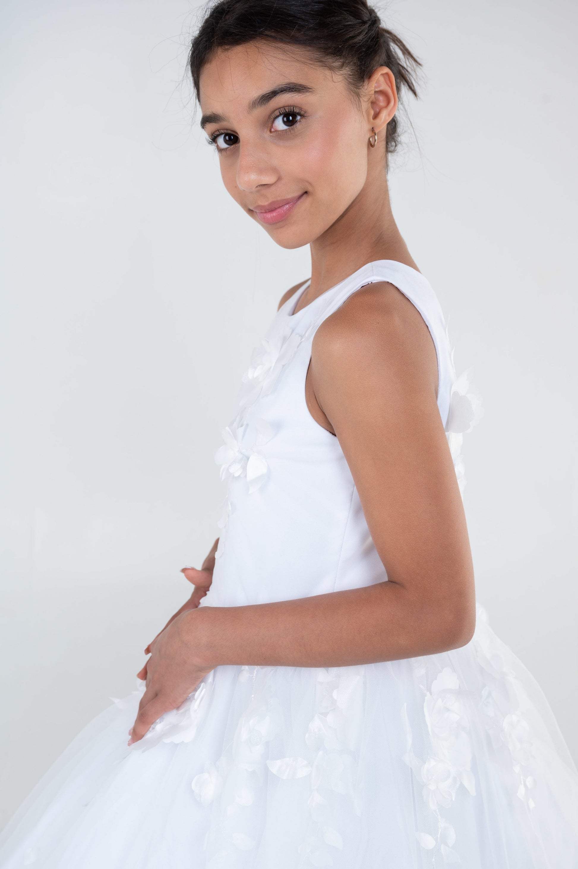 - White Label by Zoe "Nancy" ethereal tulle overlay dress features scattered flower appliqués
