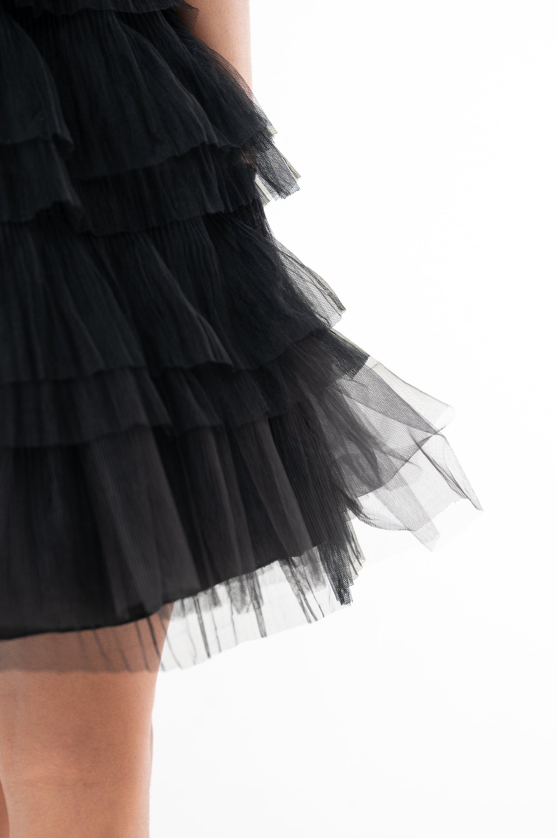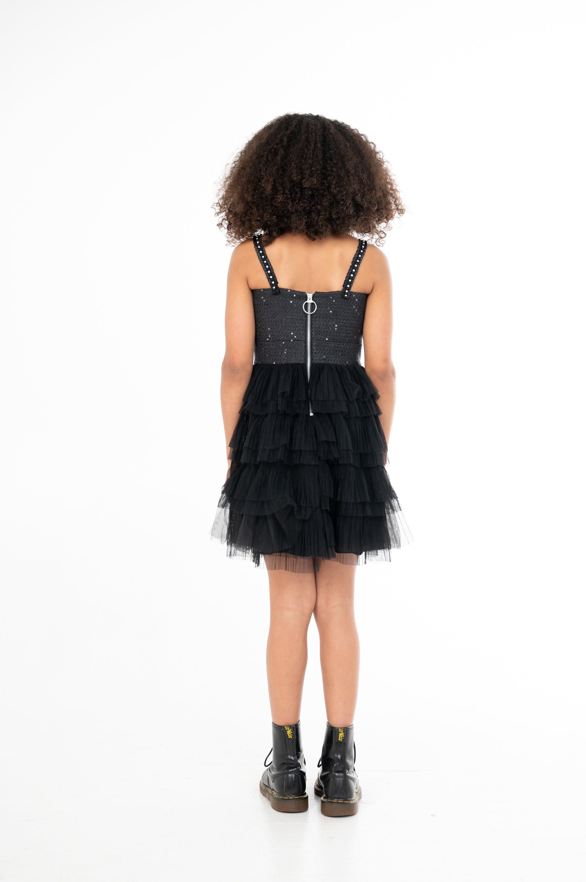 - Zoe "Naomi" combo dress features a tweed bodice with a tulle skirt