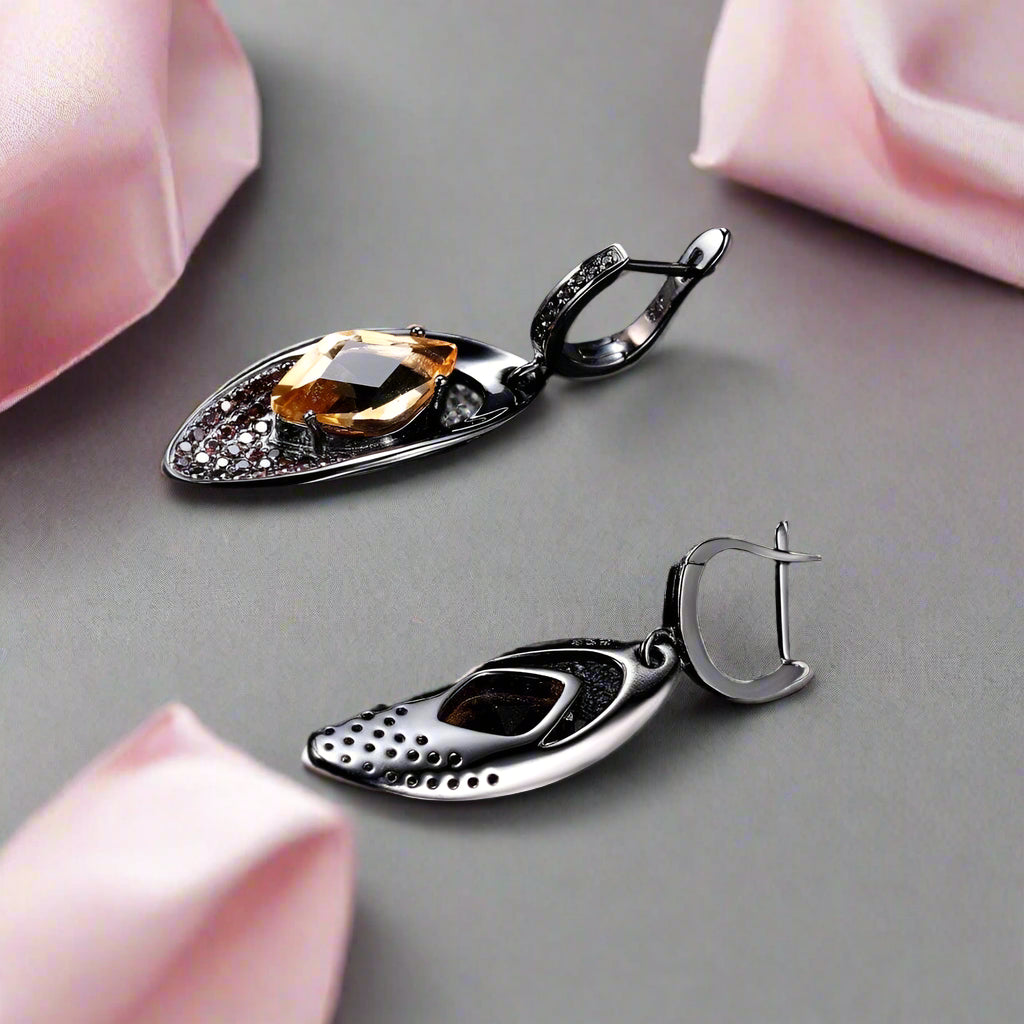 These Natural Citrine Gemstone Gothic Drop Earrings are thoughtfully crafted to reflect the elegance of nature while complementing your distinctive style. This exquisite pair is designed to captivate attention, setting you apart from conventional jewelry. Created exclusively with premium materials and genuine stones, they embody quality, sustainability, and uniqueness without compromise.