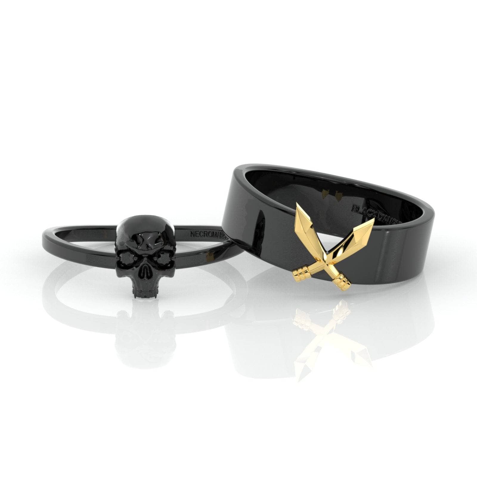 Inspired by shapeshifting, this set can be mixed and matched. Necromancers are known for their ability to summon souls, fly, heal, and many more. With this unique ring set, you will also have the ability to summon your soulmate.