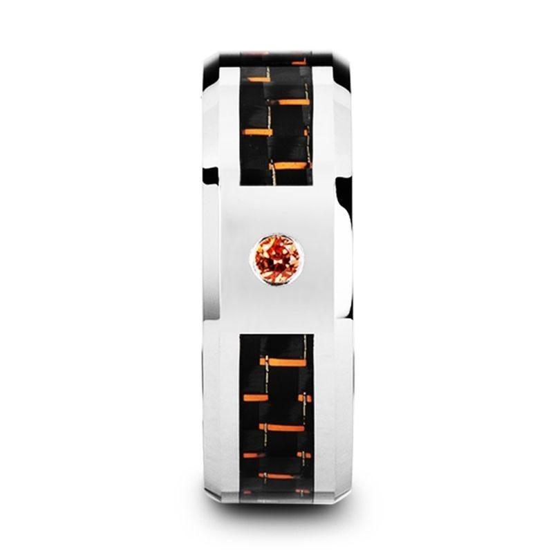 NOAH Tungsten Ring with Black and Orange Carbon Fiber and Orange Padparadscha Setting - 8mm