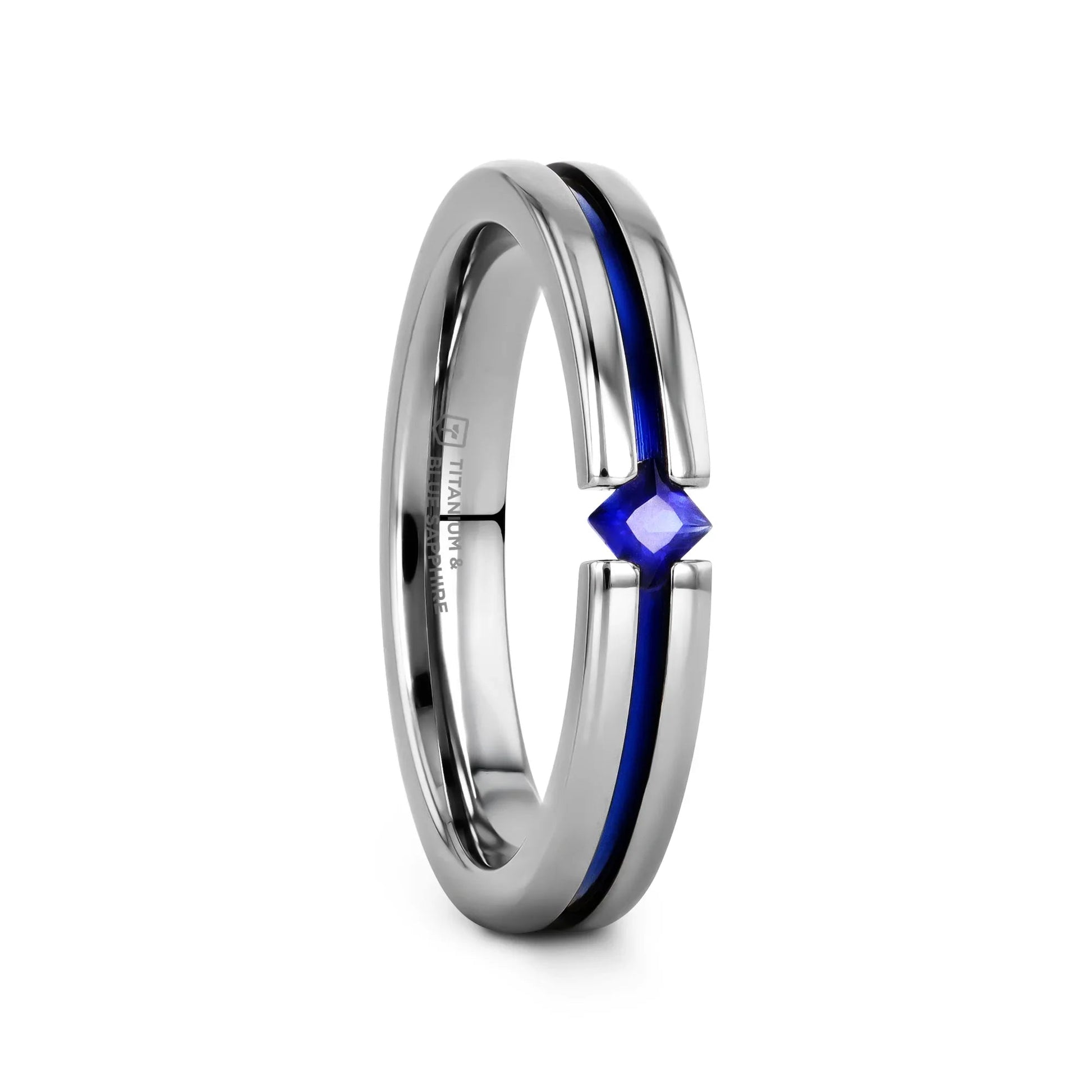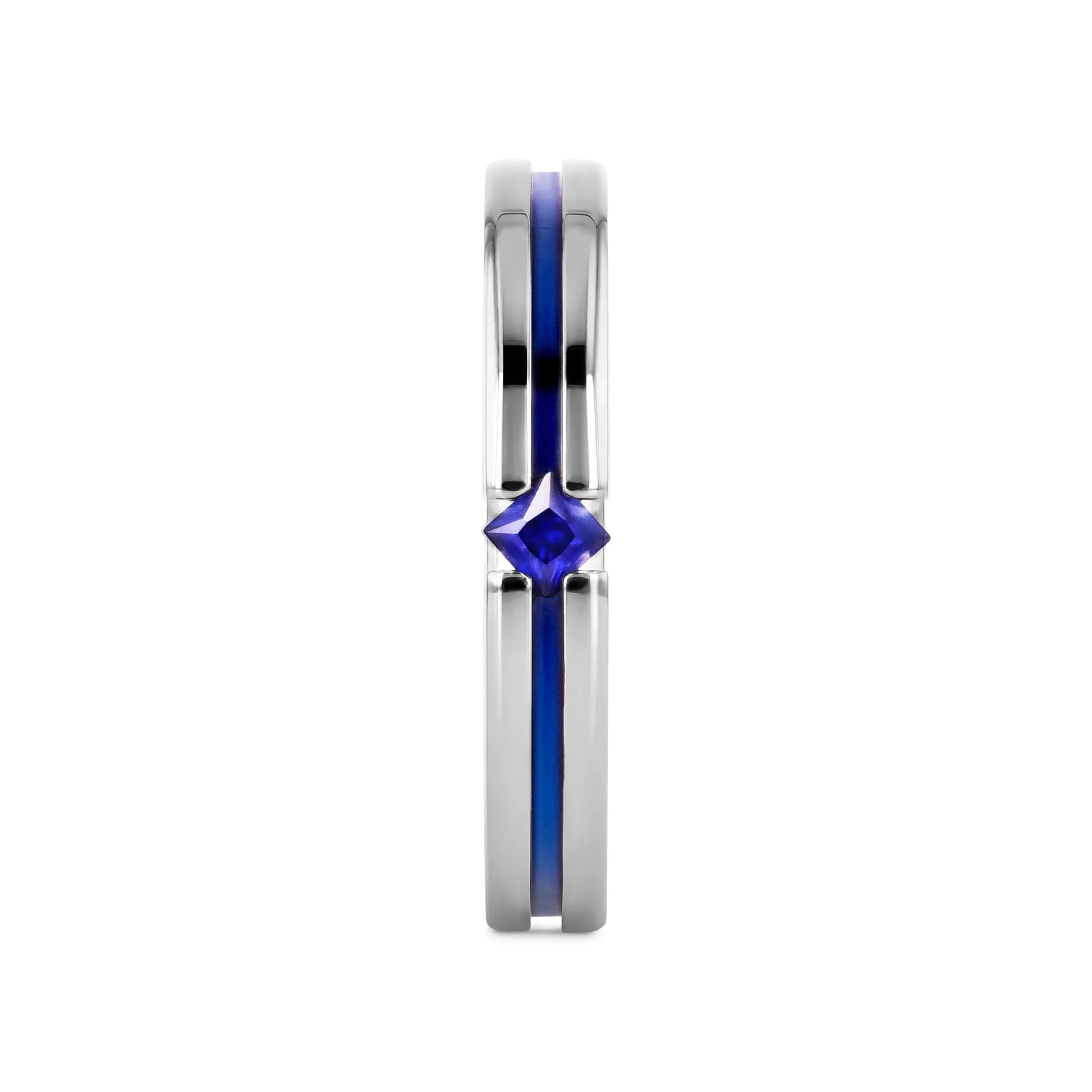 NYMERIA Tension Set Blue Sapphire Titanium Band with Blue Stripe - 4mm