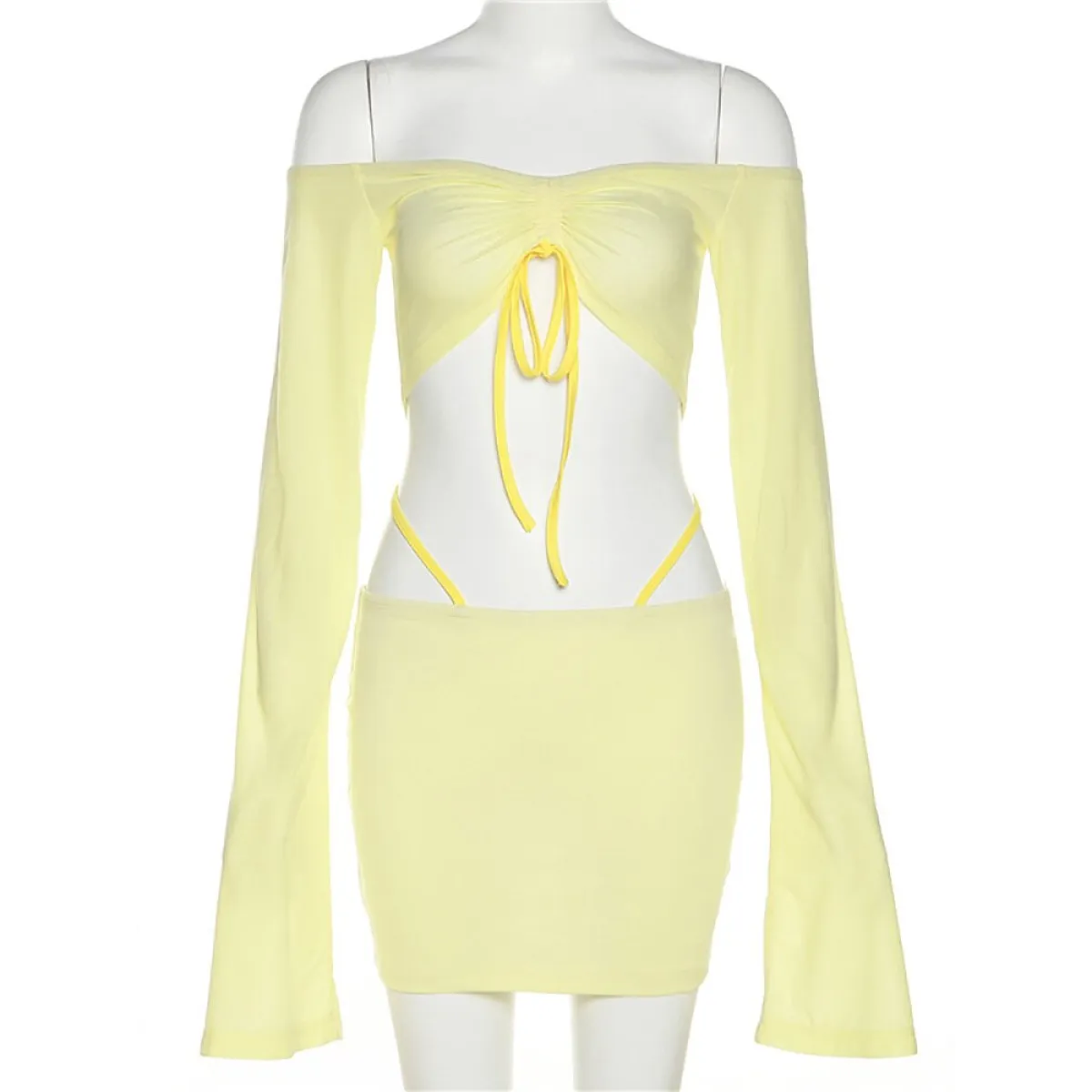 MOST WANTED: OFF SHOULDER FLARE CROP/SKIRT CLUB SET WITH A 50% DISCOUNT!