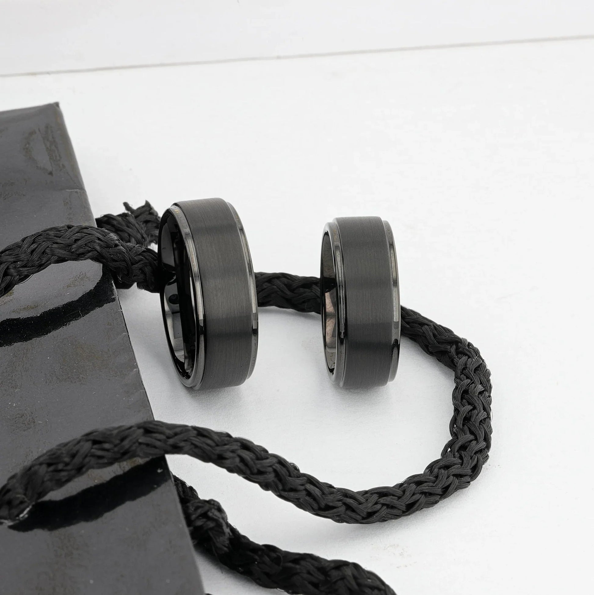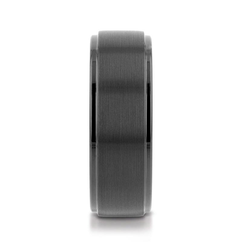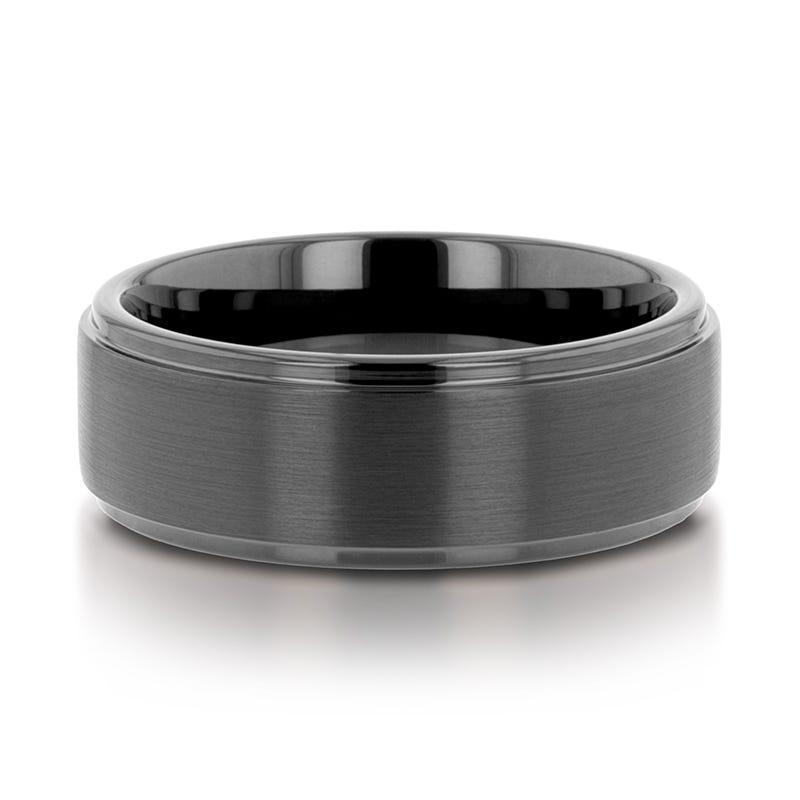 ORION Flat Black Tungsten Ring with Brushed Raised Center and Polished Step Edges - 6mm - 8mm