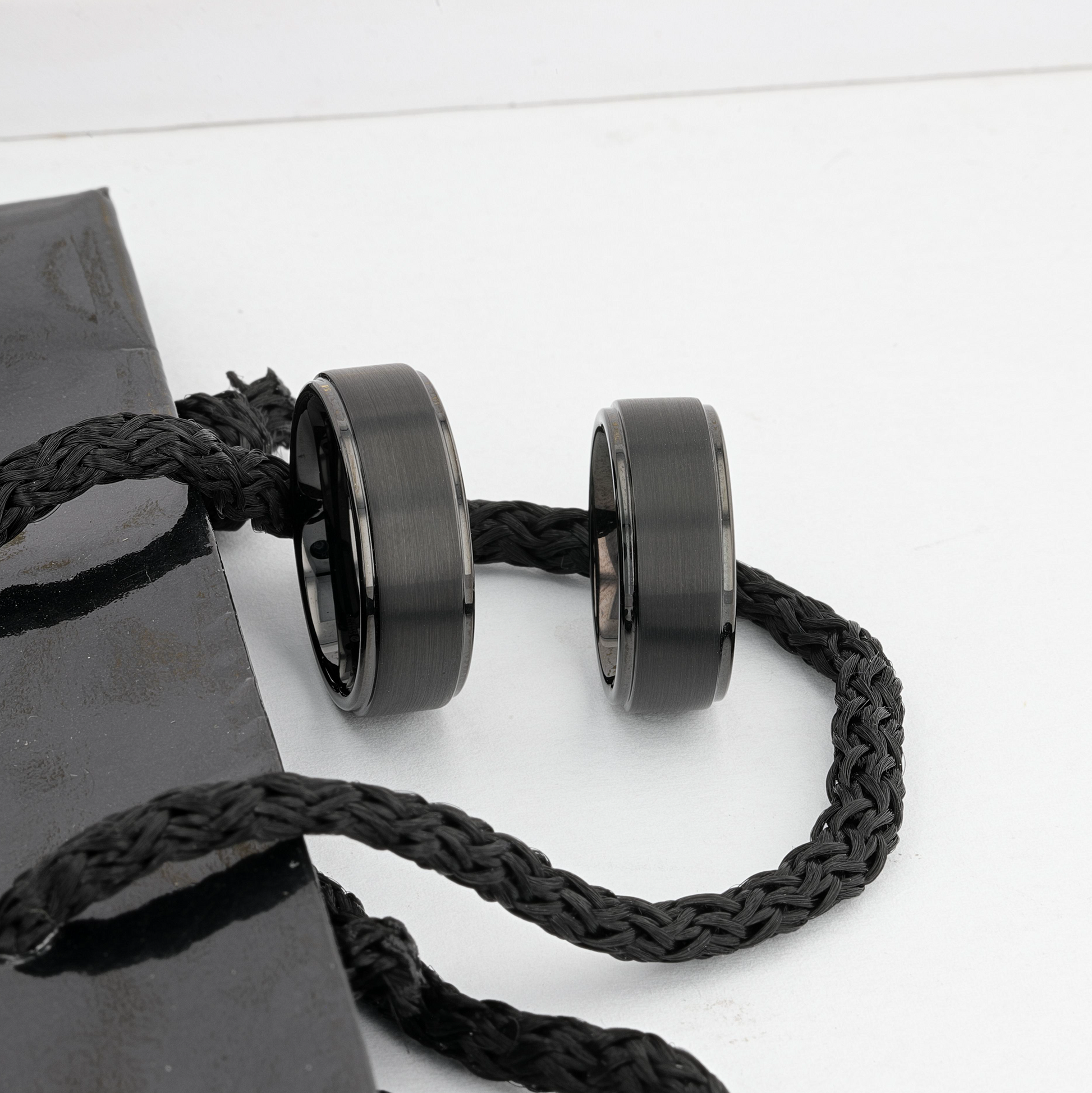 ORION Flat Black Tungsten Ring with Brushed Raised Center & Polished Step Edges - 6mm - 8mm