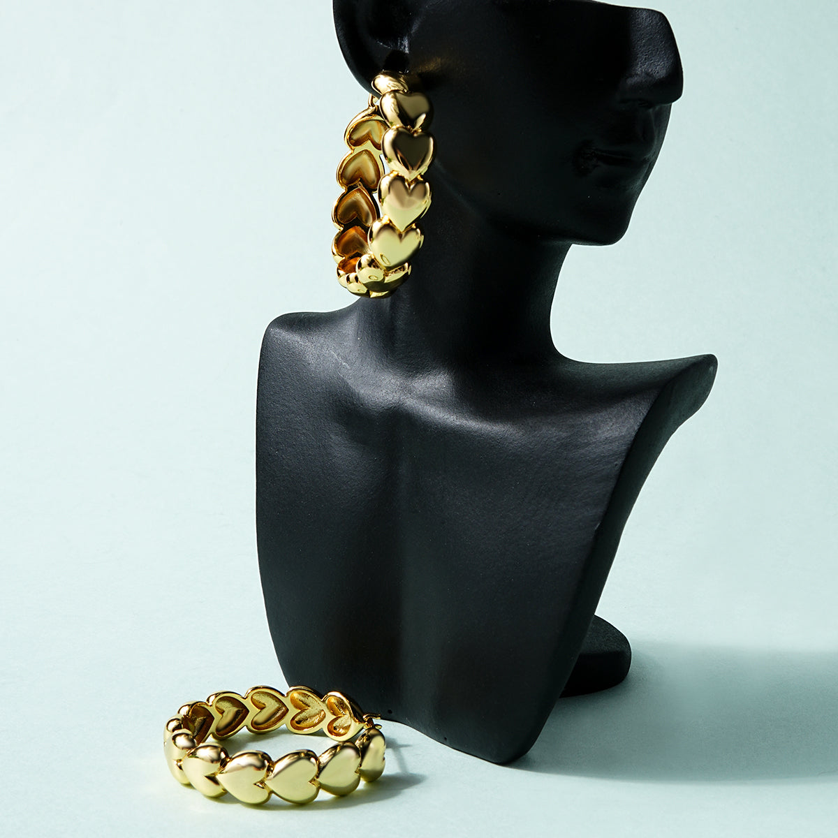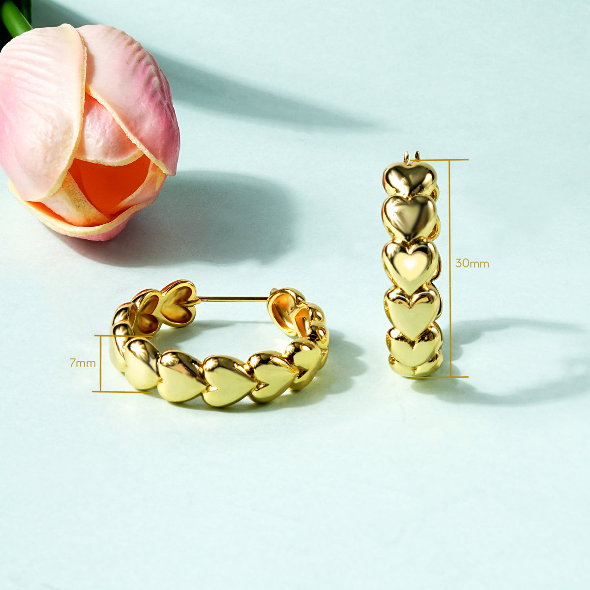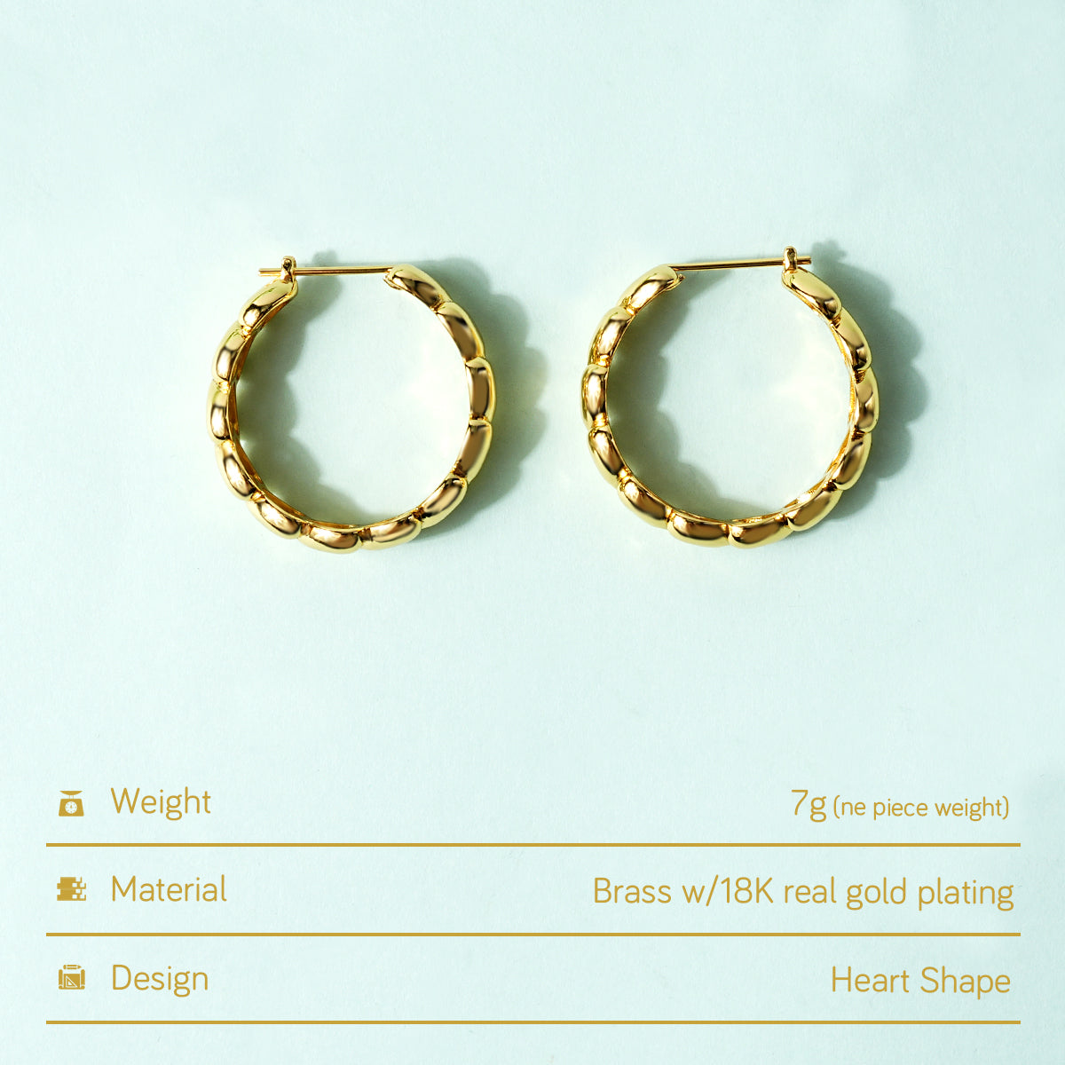 Oufer Chubby Heart 18K Real Gold Plating Trendy Hoop Earring. These earrings are perfect for any casual occasion and add a touch of elegance to your outfit.