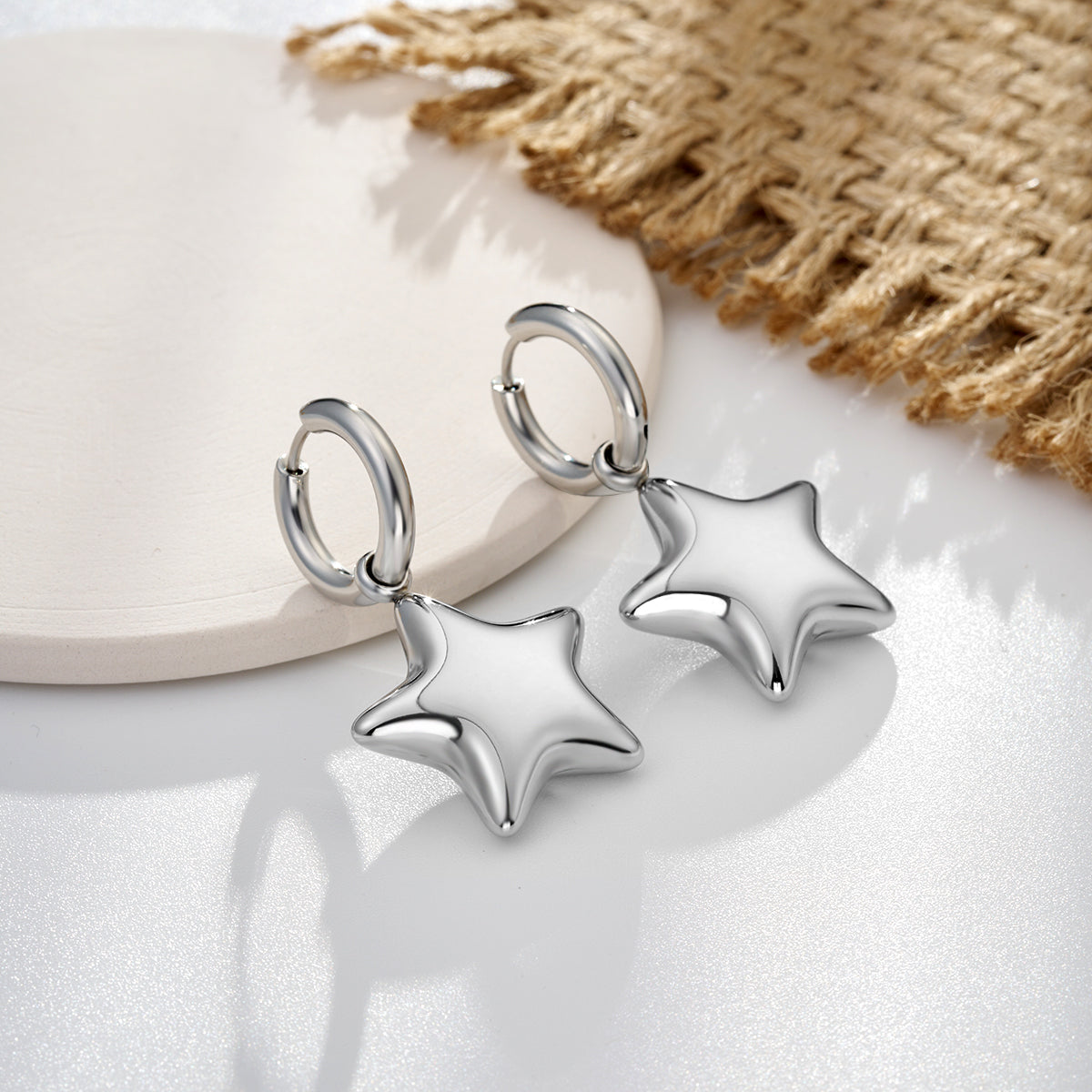 Bubble Star Water Safe Stainless Steel Hoop Earrings