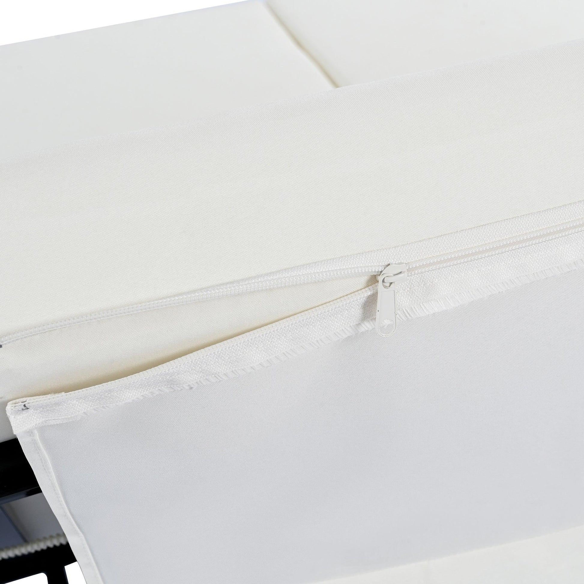 【All-Weather Cushion and Pillow】 :The one-piece soft cushions are designed for maximum comfort. The back and seat cushions of this daybed are connected together, and the included pillows are made of high-density foam for extreme comfort and are removable for individual use needs. The thick, highly resilient foam resists sagging. All stain-resistant, UV-resistant, and weather-resistant cushion covers are removable and washable for easy maintenance and durability.