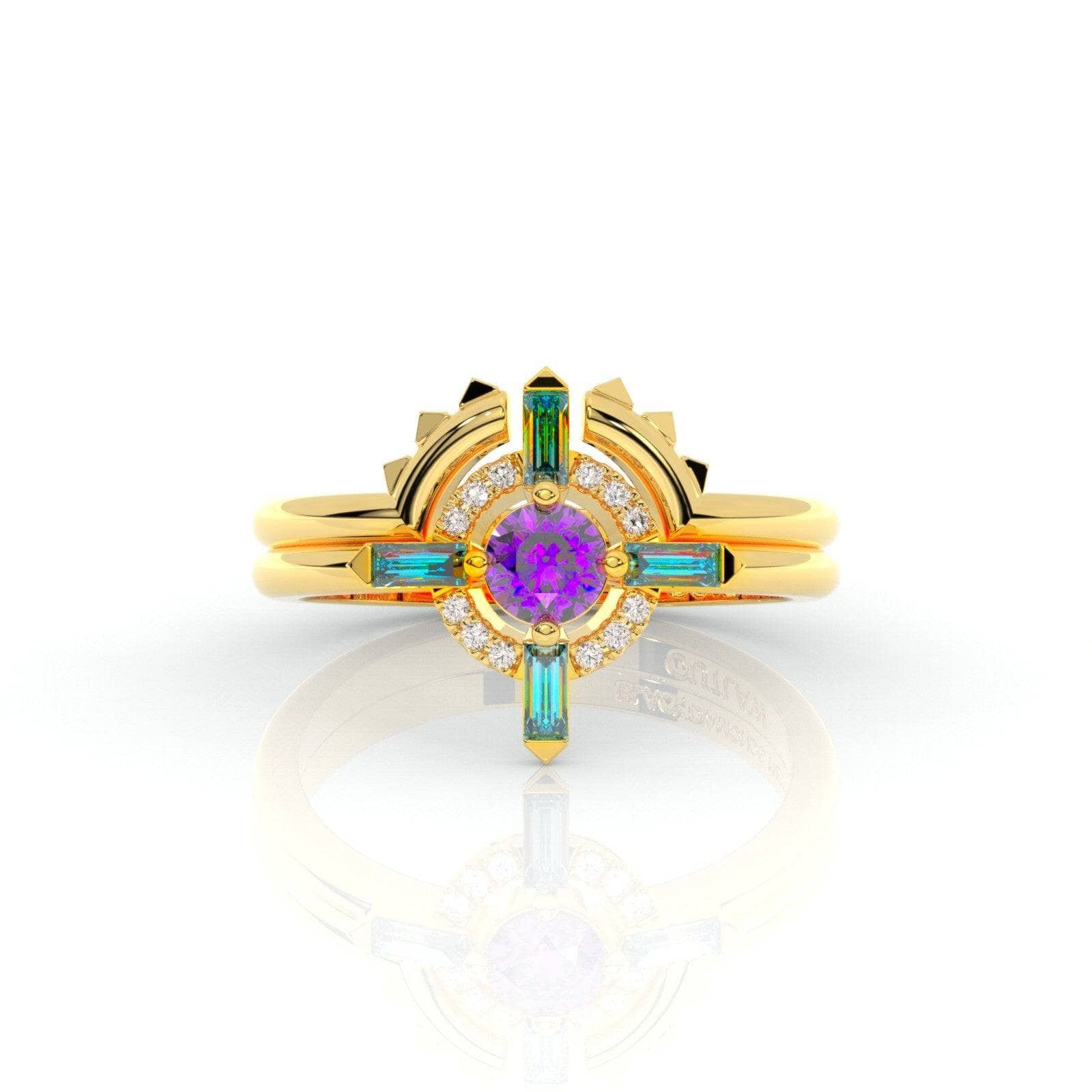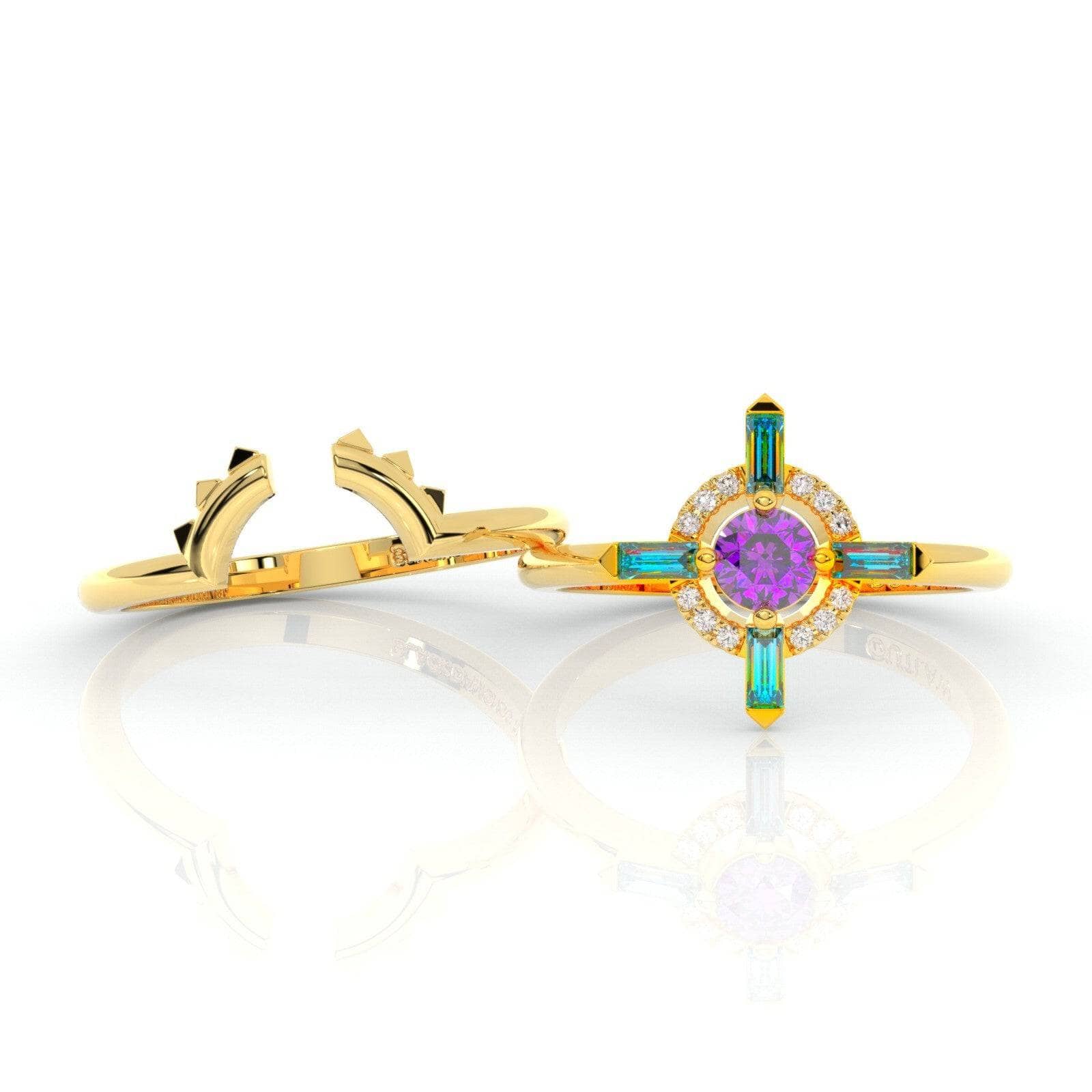 NOTE: All our moissanite are certified and will pass the diamond test. Available in clear, green, blue-green, yellow, grey, and black only. If you choose moissanite and want to change the color of the stone, please indicate the color you need in the instruction box found at checkout. All other colored custom-cut stones can only be made in Diamond Alternative . To upgrade in 9k/10k/14k/18k solid gold, please contact our team.
