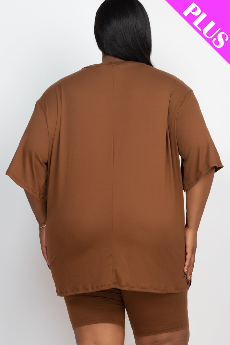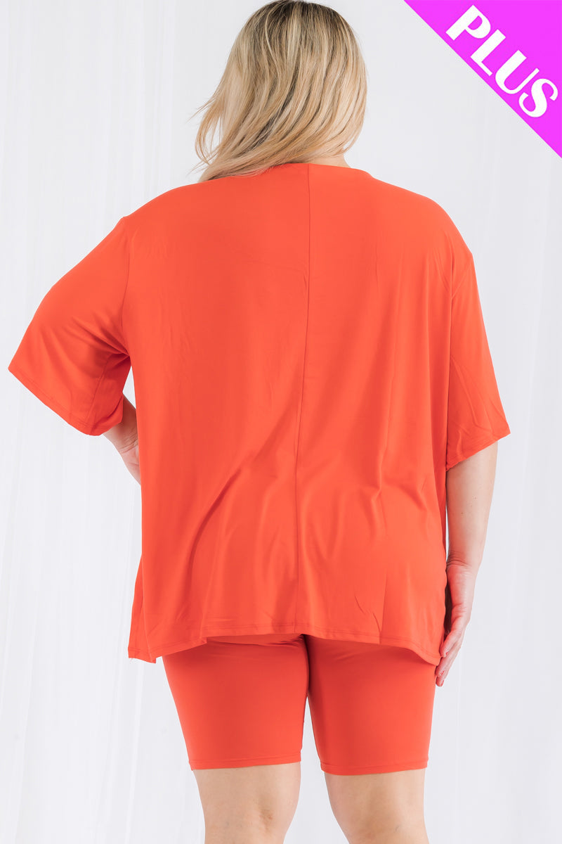 plus size top and shorts set, oversized top plus size, plus size biker shorts set, comfy plus size lounge set, casual two-piece outfit plus size, high-waisted plus size shorts set, relaxed fit plus size set