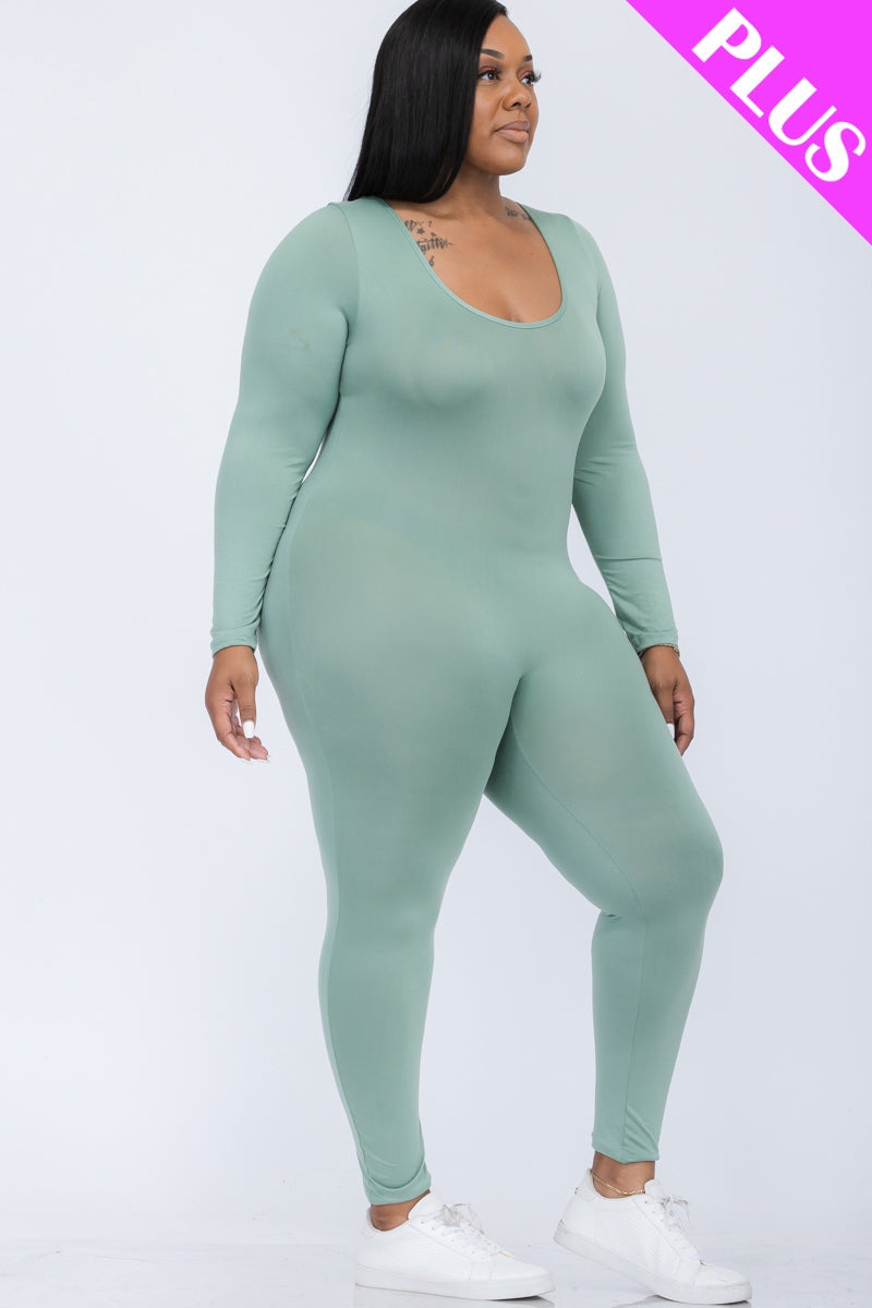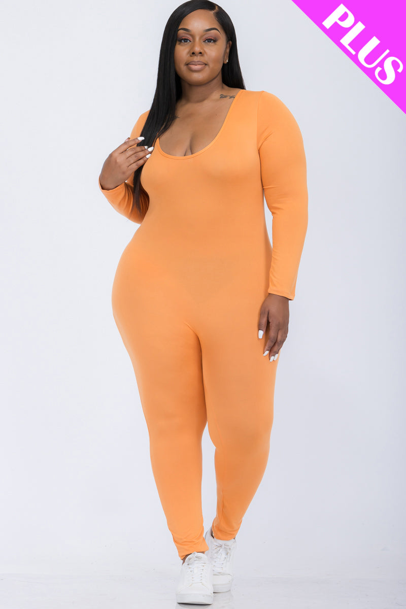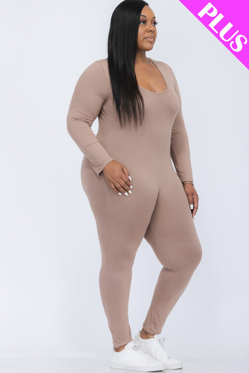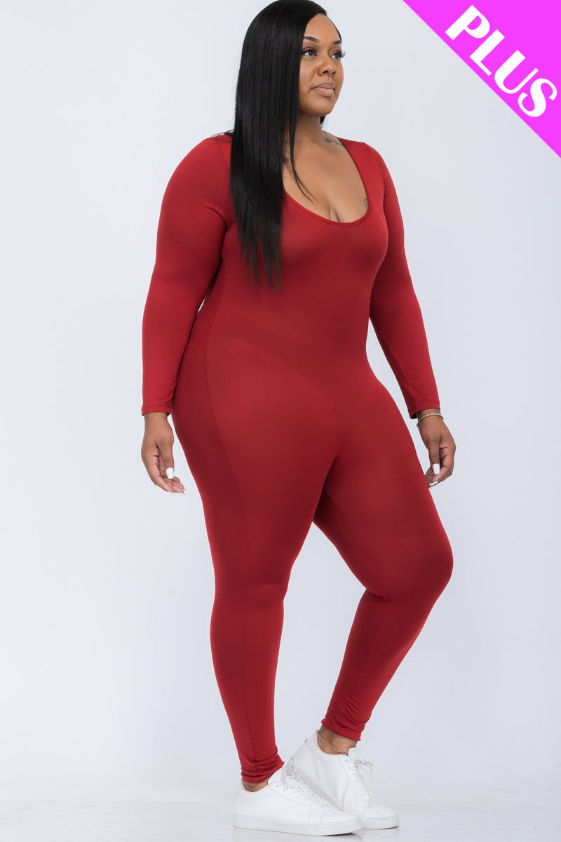 Plus Size Scoop Neck Long Sleeve Bodycon Jumpsuit (CAPELLA)