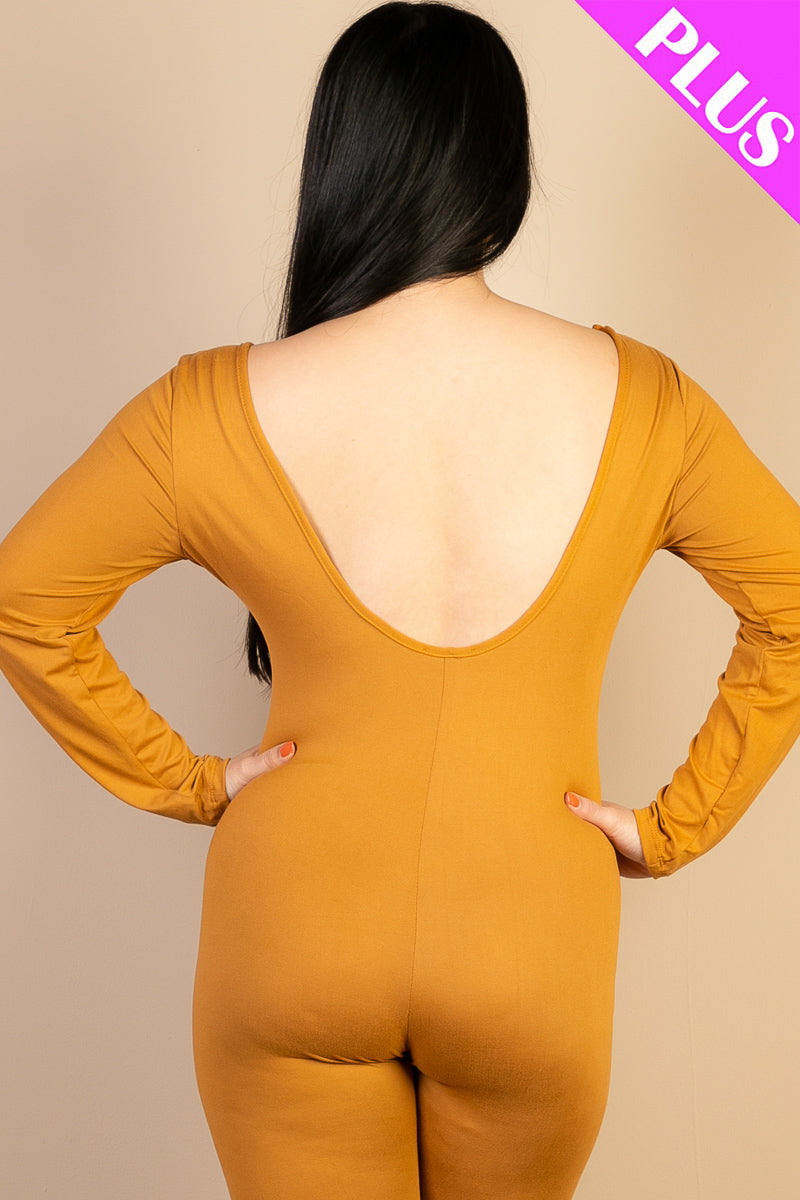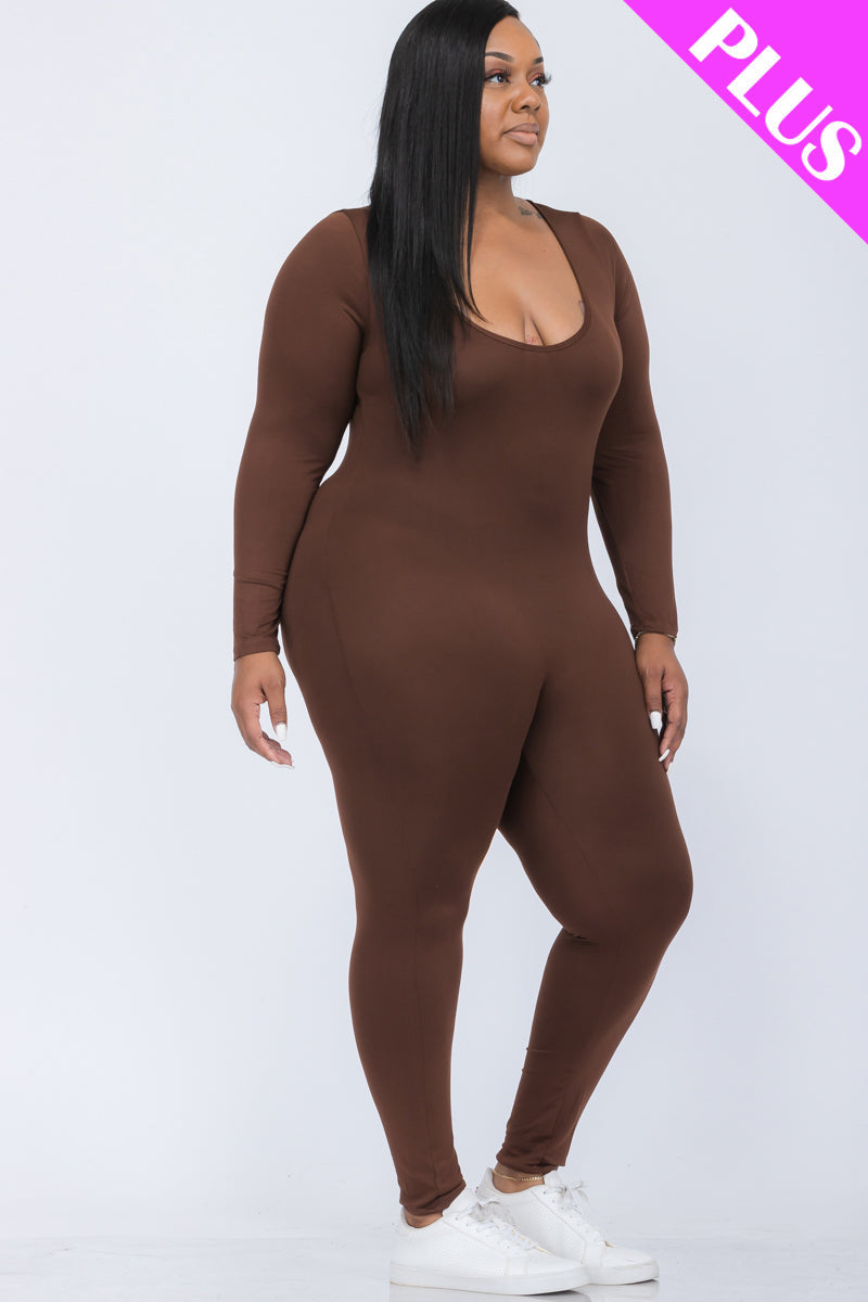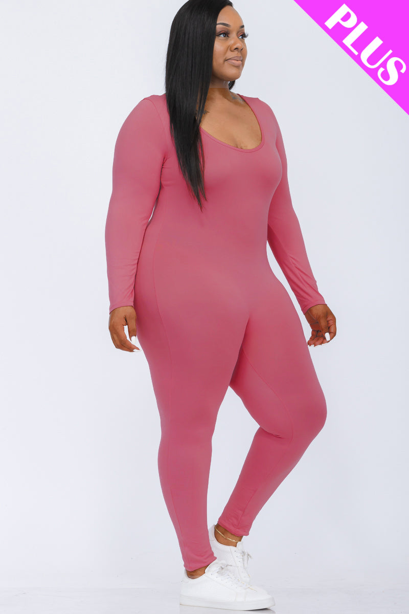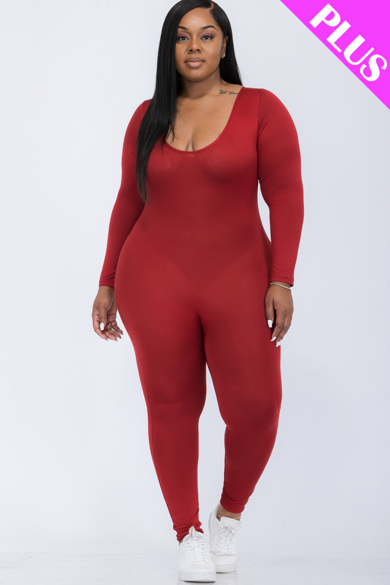 Plus Size Scoop Neck Long Sleeve Bodycon Jumpsuit (CAPELLA)