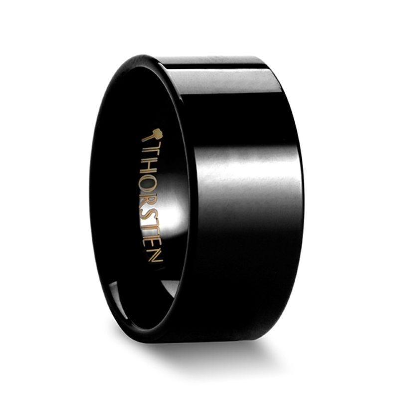 This attractively crafted 10 mm wide Comfort Fit ring from our Tungsten Wedding Bands line is made from high grade cobaltfree Tungsten Carbide. This style is a simple flat design with a black, polished finish.