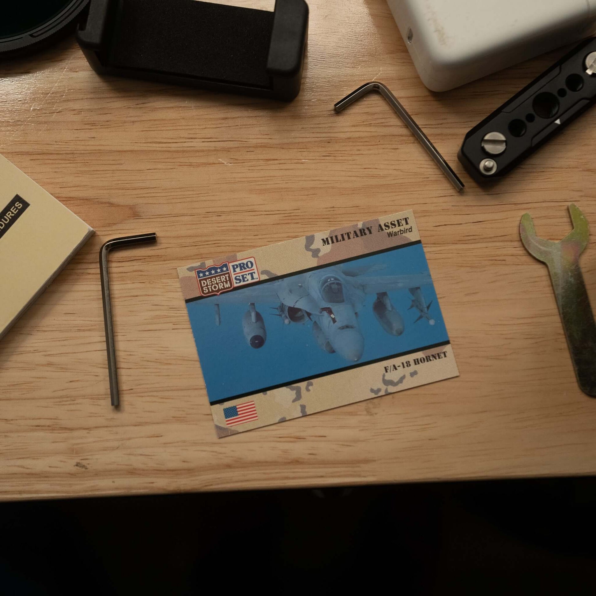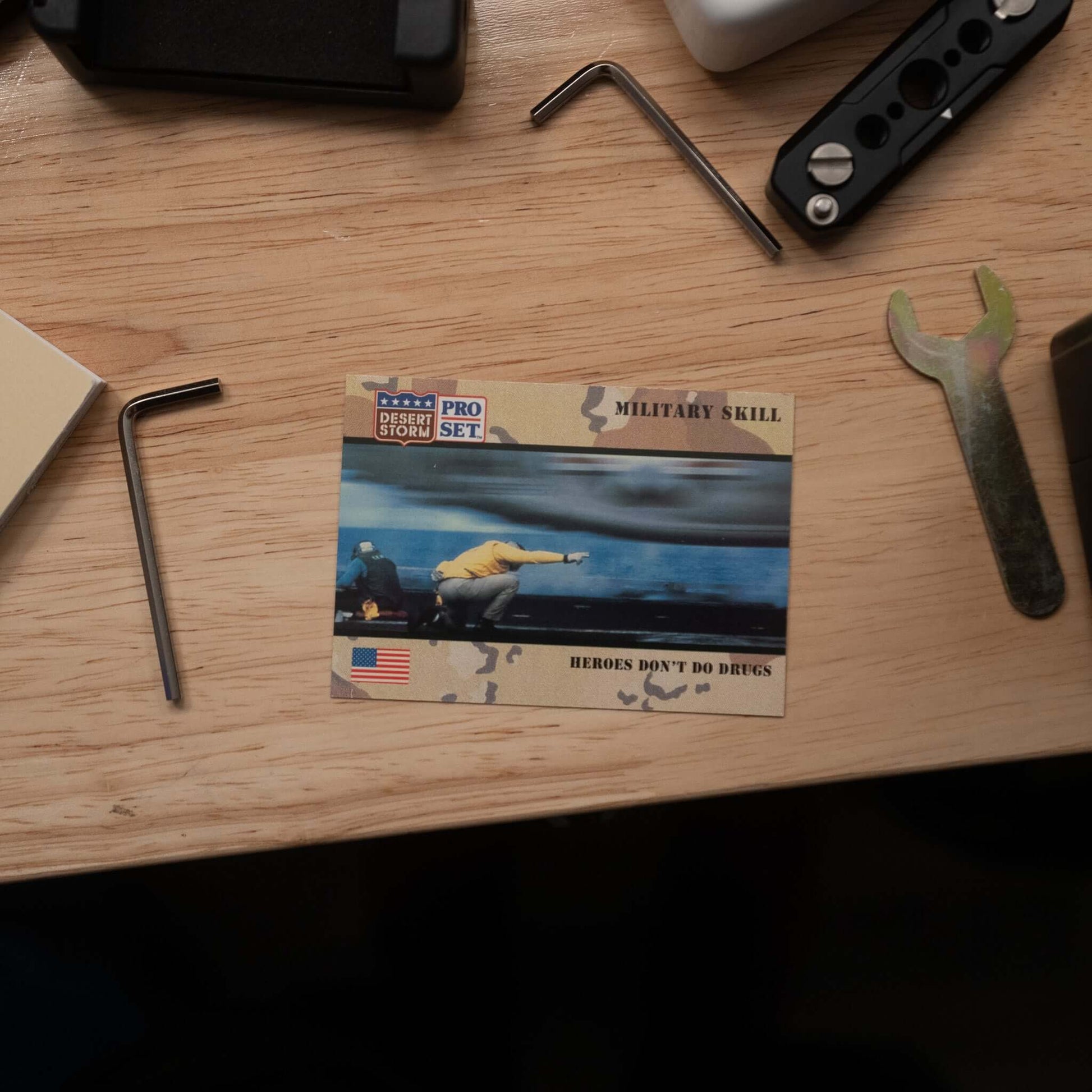 The Pro Set trading card decks were sold during and after Operation Desert Storm. They feature anything from prominent leaders such as President George Bush and Saddam Hussein or weapons systems like the Stinger missile and F-16.