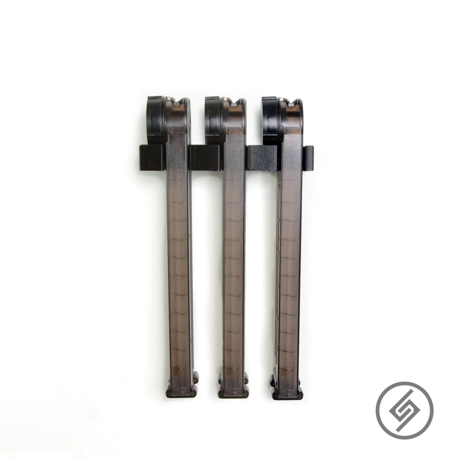 Organize your FN PS90 magazines with our custom-fit wall mount, designed to hold your 50-round 5.7x28mm mags securely and cleanly. Whether you're building out a gun wall, outfitting a safe, or prepping for range day, this mount keeps your PS90 mags lined up, accessible, and ready for action. Built tough in the USA for FN owners who demand tactical storage with a futuristic edge.