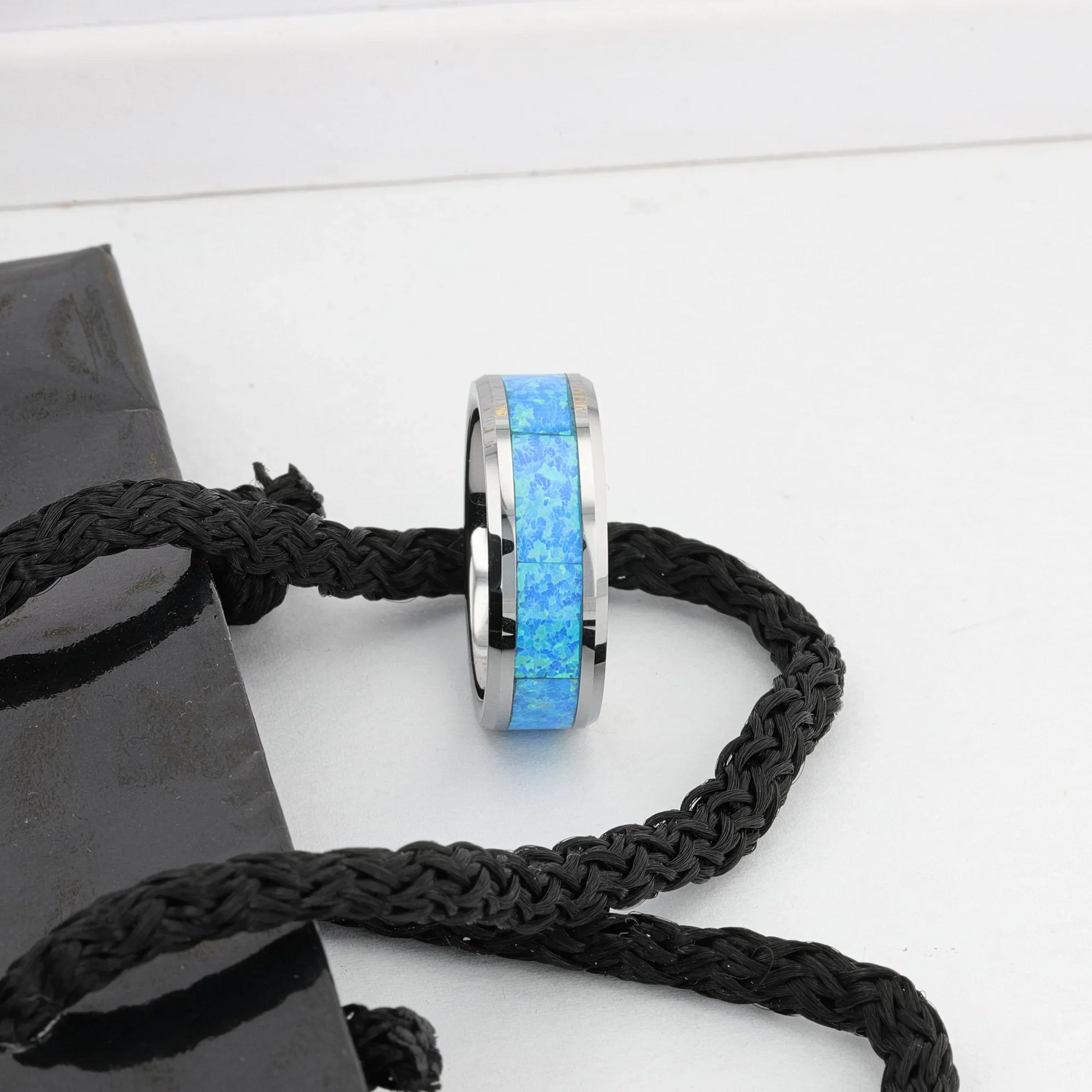 QUASAR Tungsten Wedding Band with Blue Green Opal Inlay - 4mm - 10mm