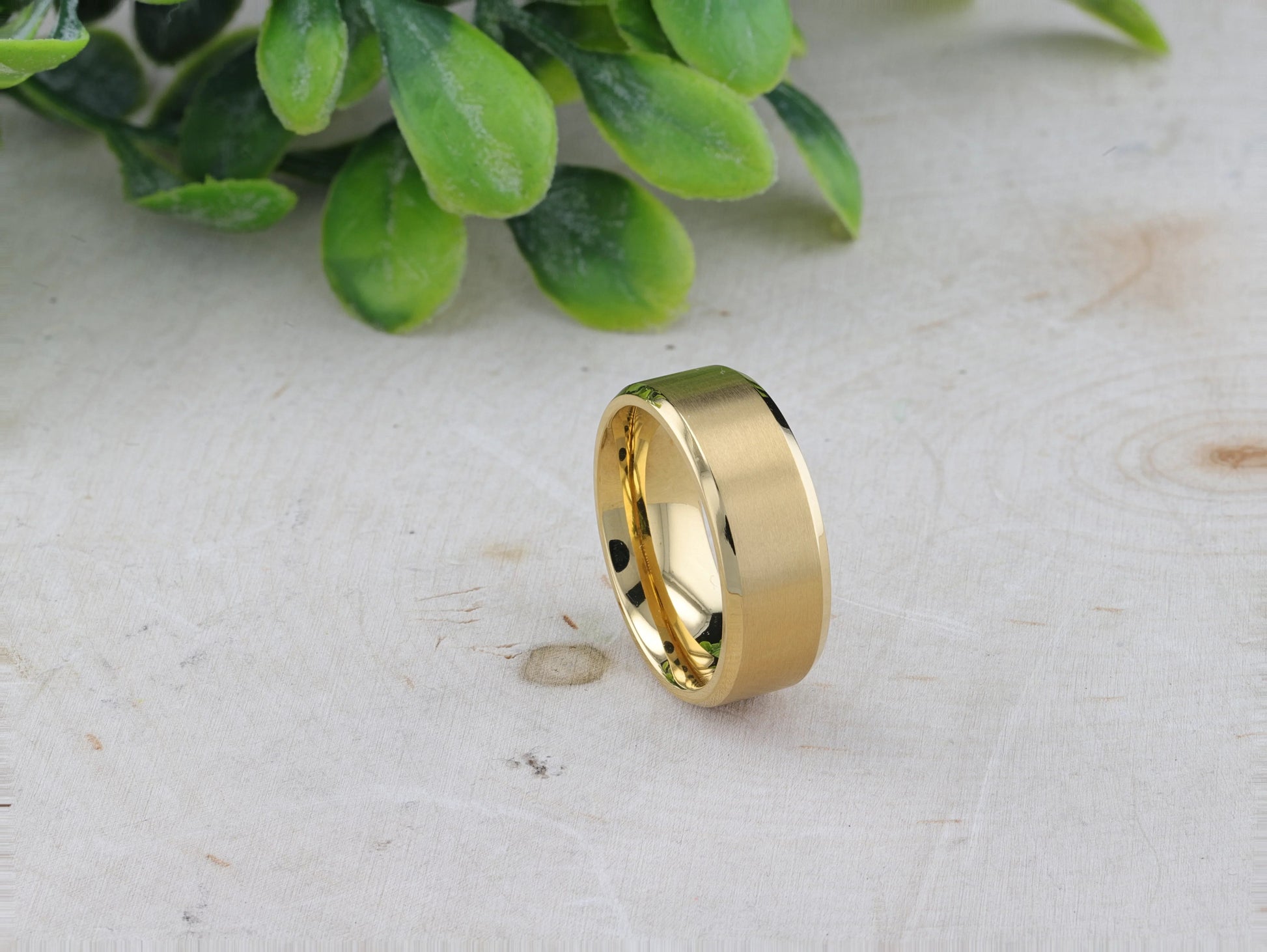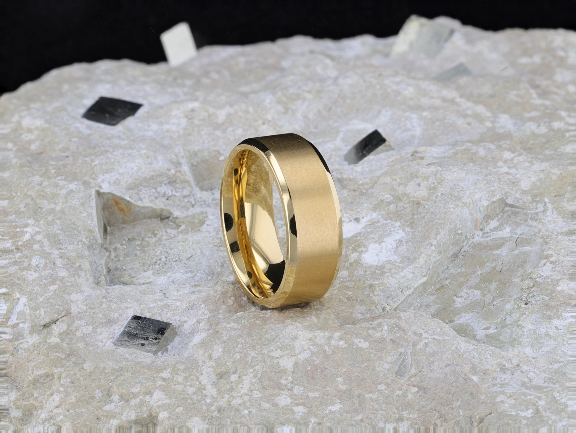 RADIATE Gold-Plated Titanium Flat Brushed Center Men's Wedding Ring With Beveled Polished Edges - 8mm
