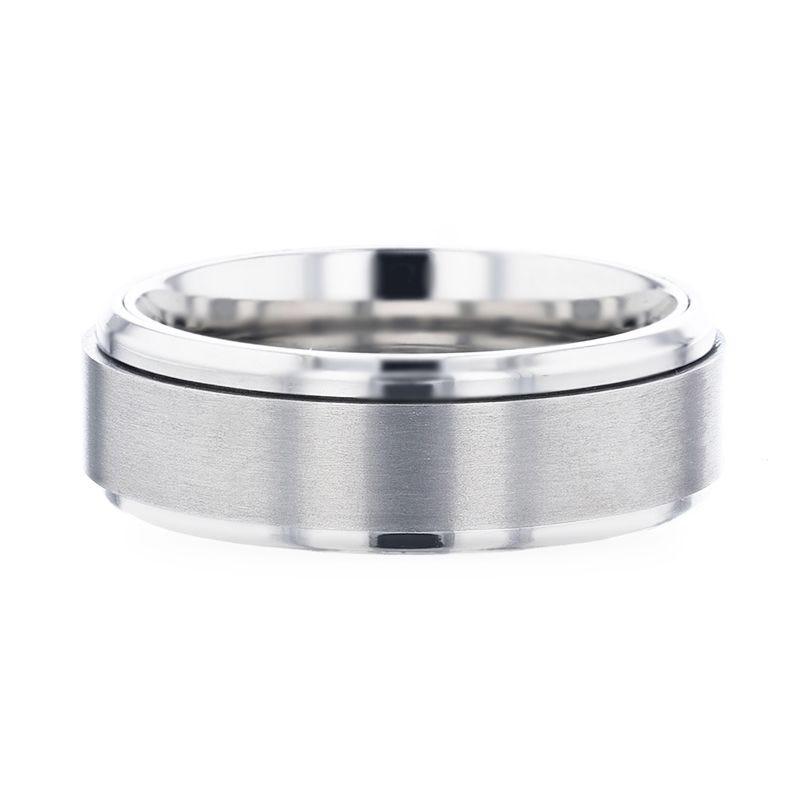 REBELLION Spinning Brushed Center Titanium Men's Wedding Band With Polished Beveled Edges - 8mm