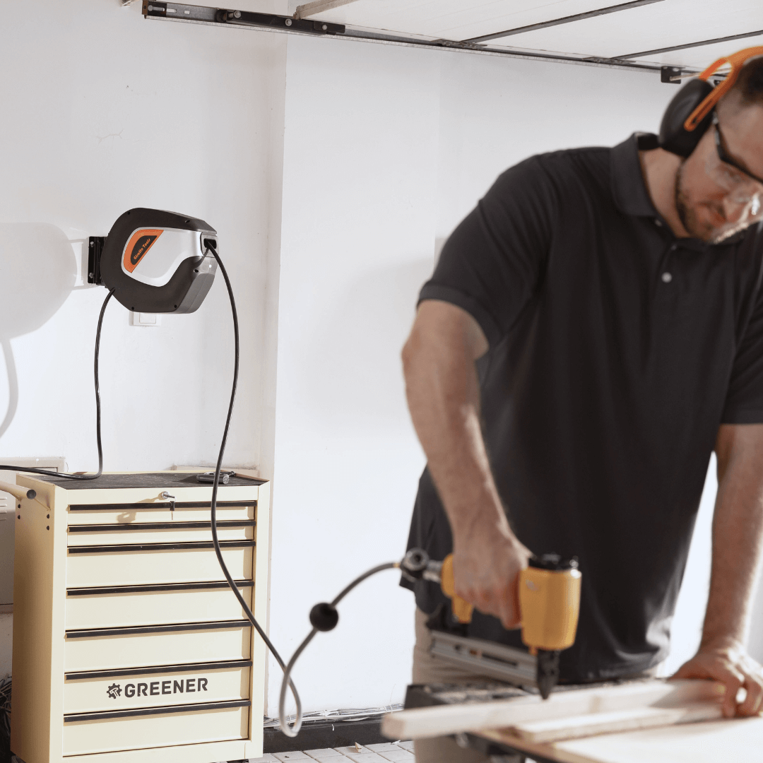 This extension cord reel is constructed of hard impact polypropylene enclosed spring-driven and has slow retraction technology and auto guide system.