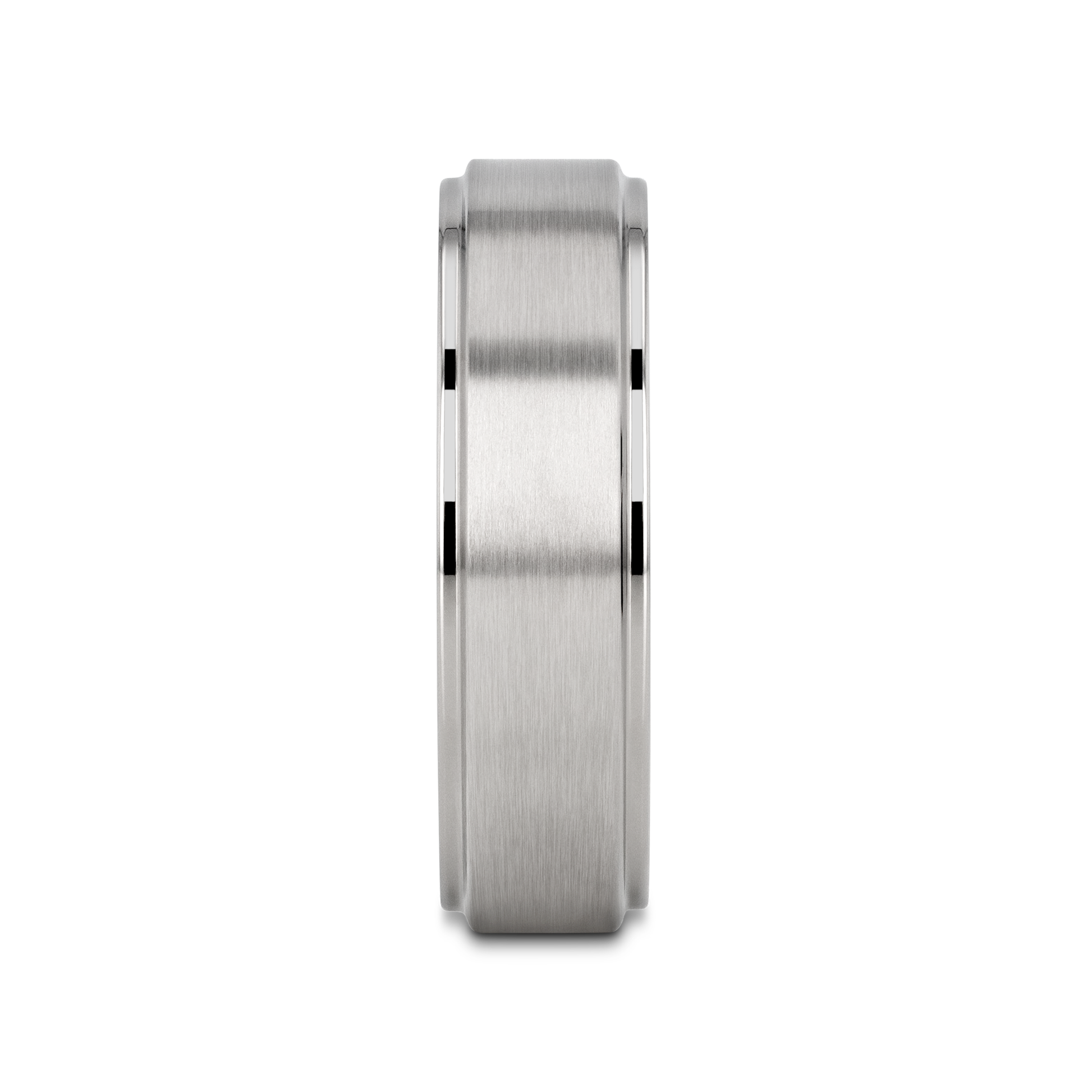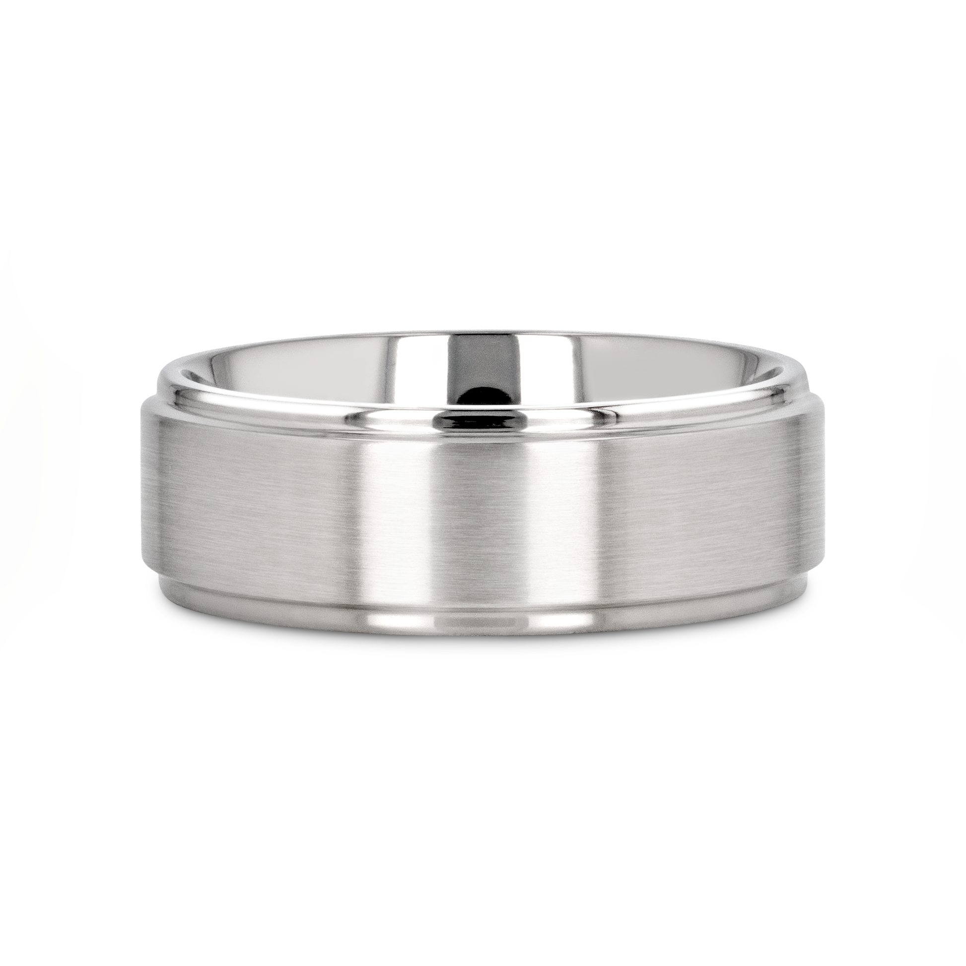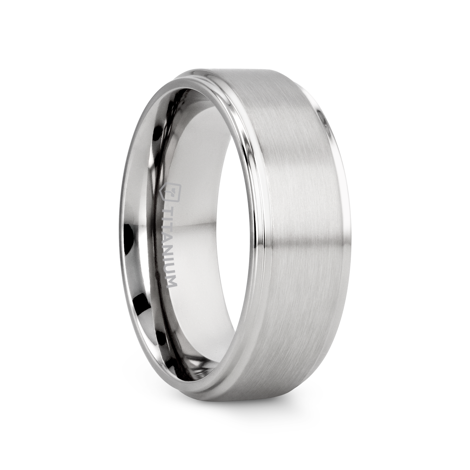 RHINOX Brushed Raised Center Men’s Titanium Wedding Ring with Polished Step Edges - 6mm & 8mm