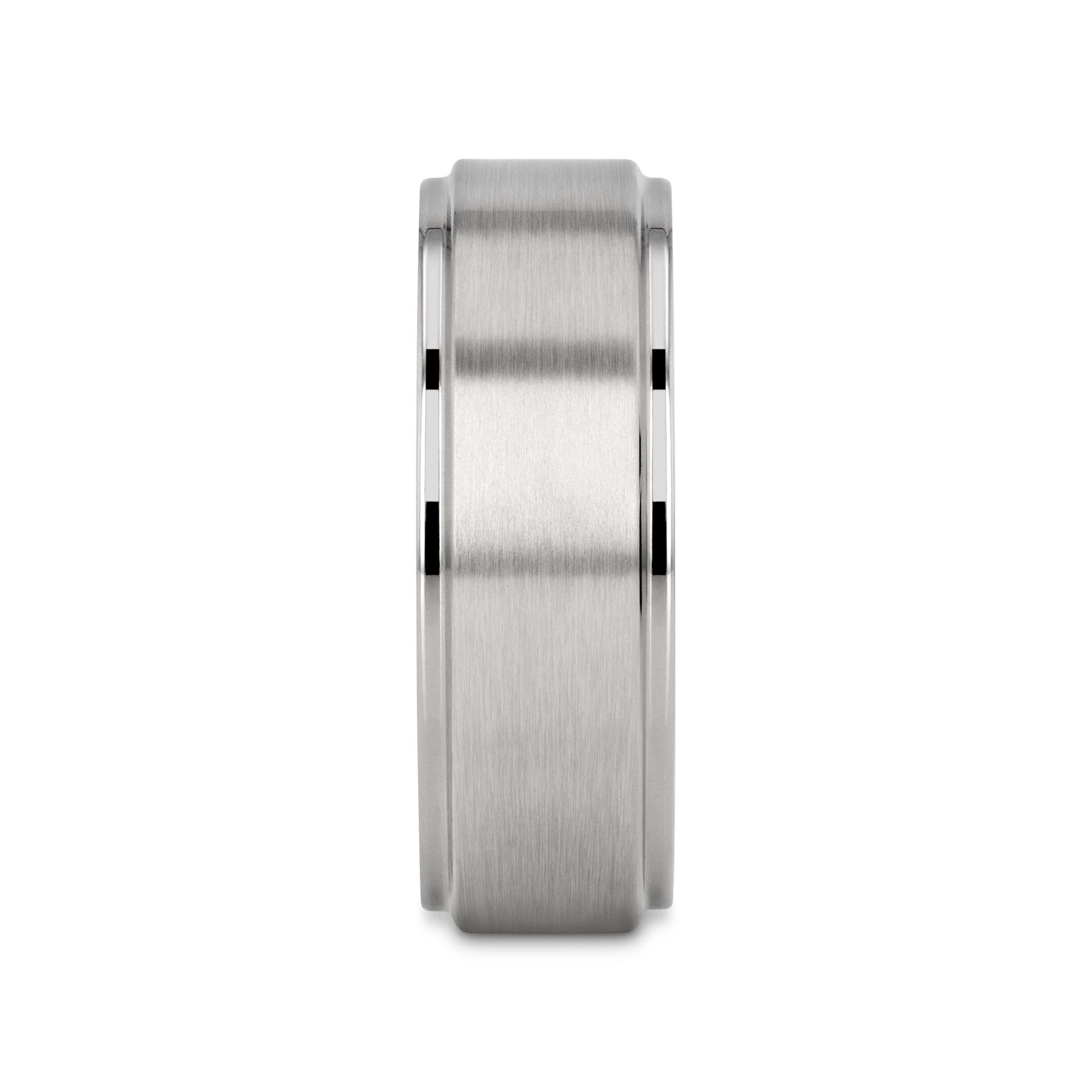 RHINOX Brushed Raised Center Men’s Titanium Wedding Ring with Polished Step Edges - 8mm