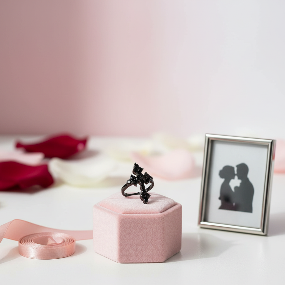 Dive into the dark and mystical world of the Round-cut Black Spinel Gothic Cross Ring by Black Diamonds New York. Crafted with 925 Sterling Silver and adorned with stunning black spinel stones, this captivating piece is perfect for the bohemian at heart. The gothic cross design adds a touch of edgy elegance, while the round-cut stones sparkle and shine with every movement. Dare to be different with this trendy and unique high-quality and affordable ring.
