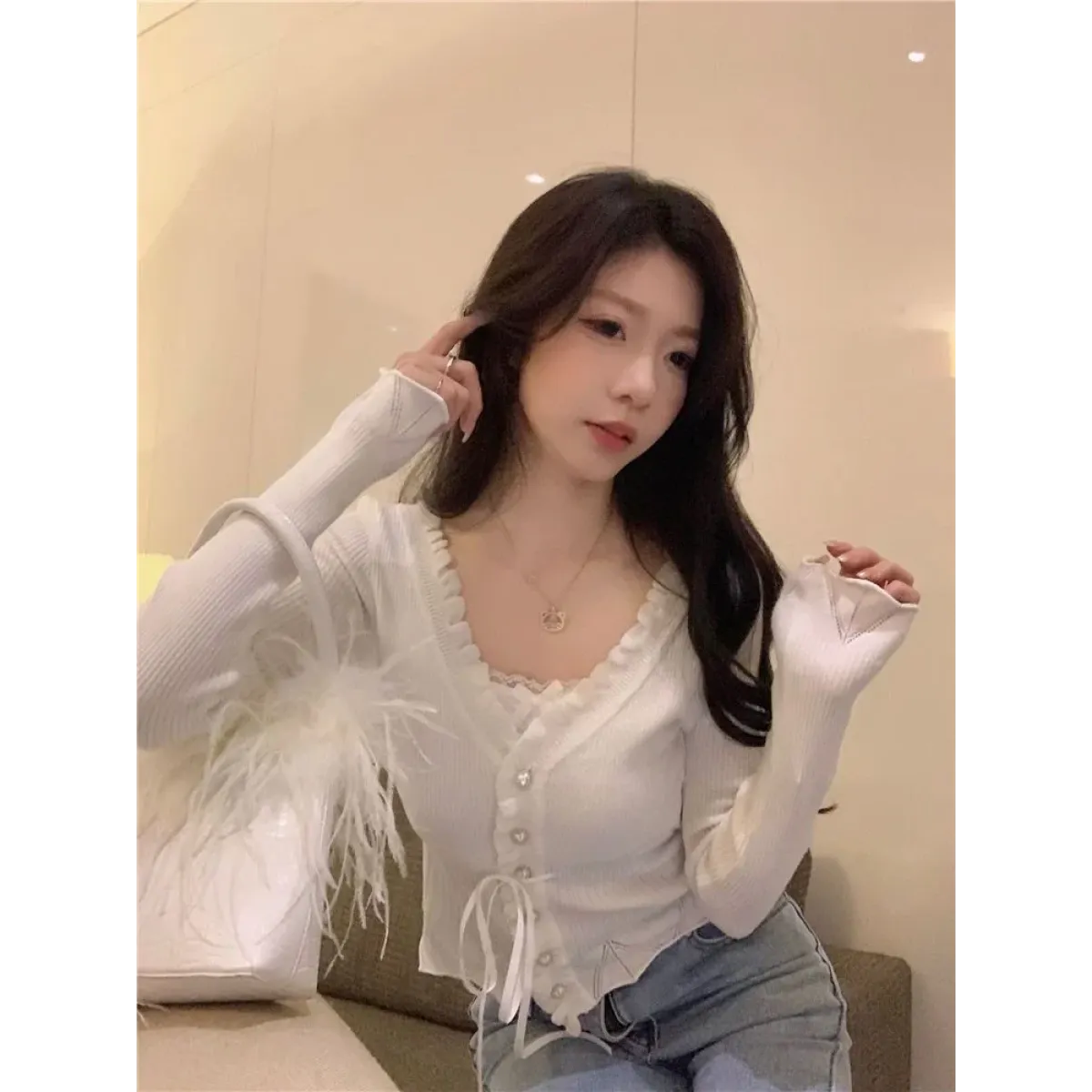 Ruffle Knit Cardigan – Harajuku Lace Trim Slim Fit Sweater