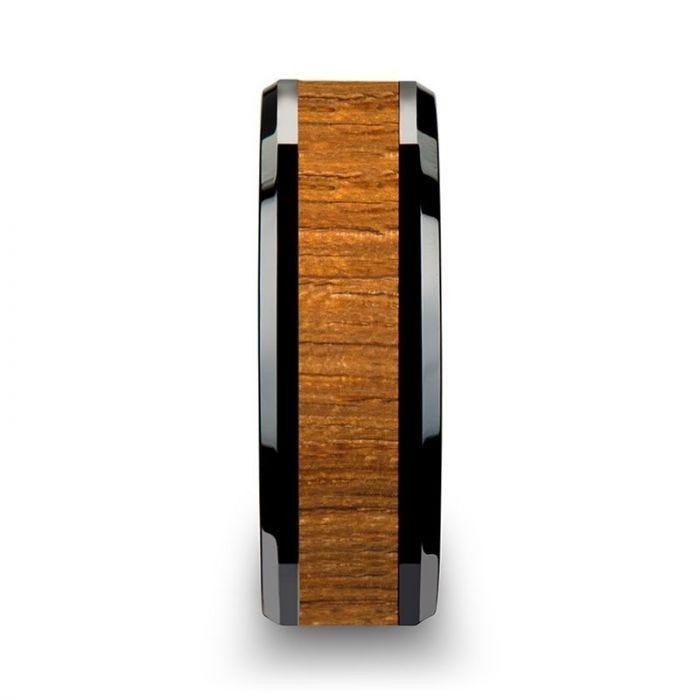 SAGON Black Ceramic Ring with Polished Bevels and Teak Wood Inlay - 6mm - 10mm