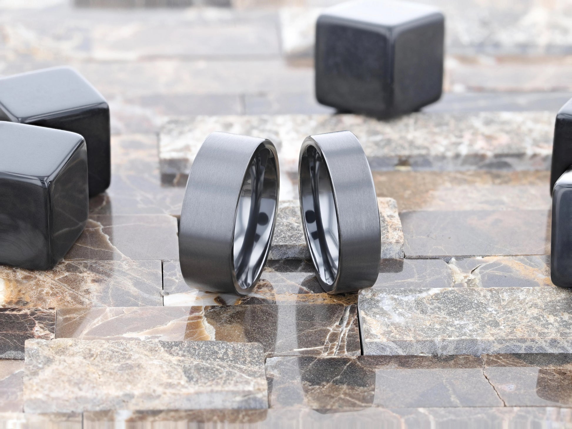 SAN BERNARDINO Brushed Finish Flat Black Titanium Men’s Wedding Band - 6mm & 8mm