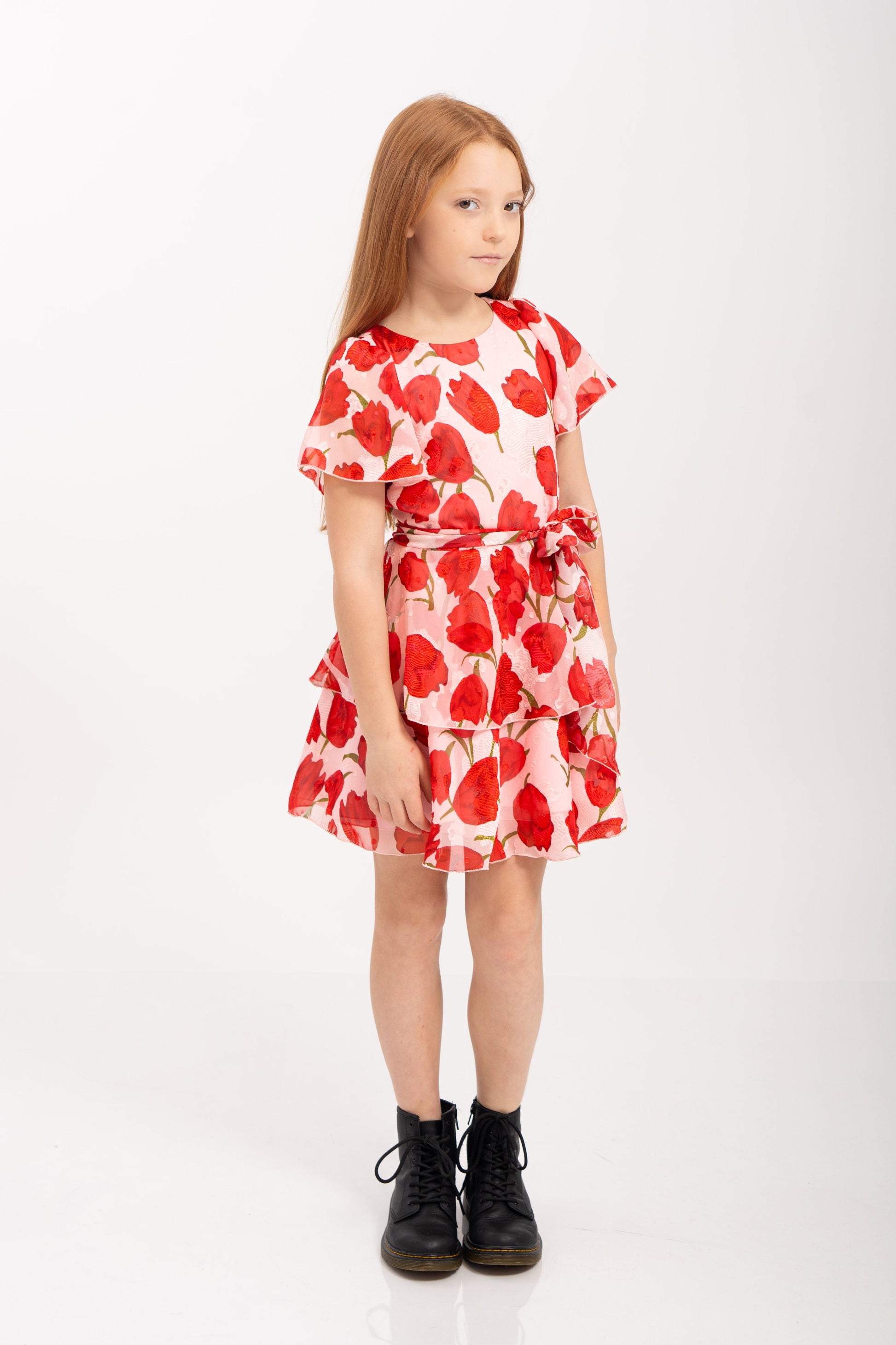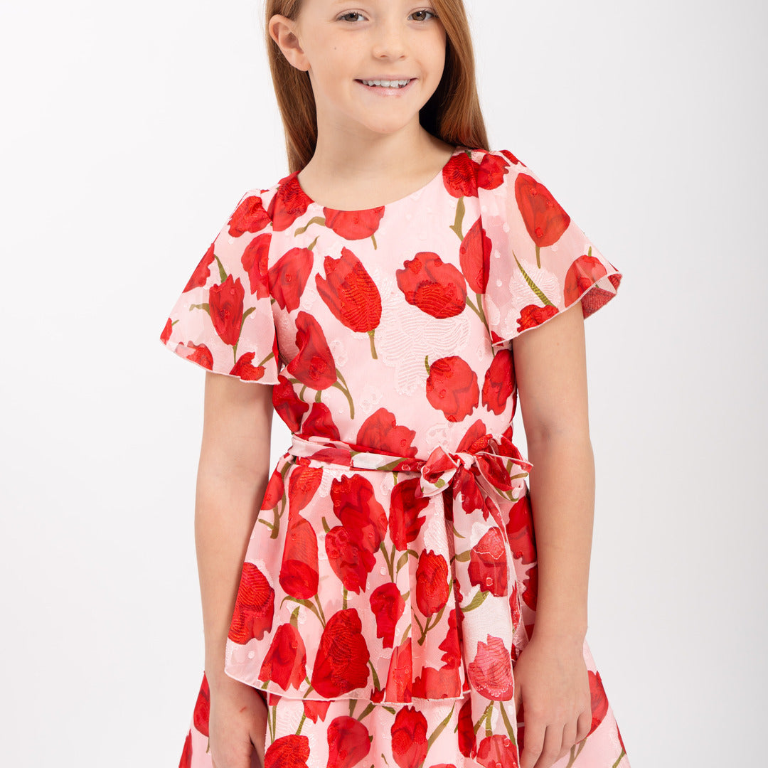 - Zoe "Savannah" tiered tulip-print chiffon dress