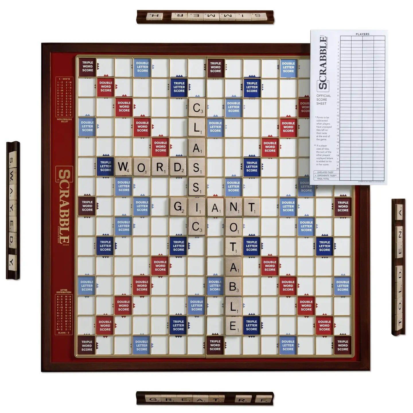 Elevate your word game experience with the Scrabble Luxury Edition. This premium version features a rotating mahogany-finish gameboard with raised grid lines, deluxe wooden letter tiles, and velvet tile pouches. The enhanced design offers both superior functionality and elegant aesthetics, making it an impressive centerpiece for game nights and a sophisticated addition to any collection.