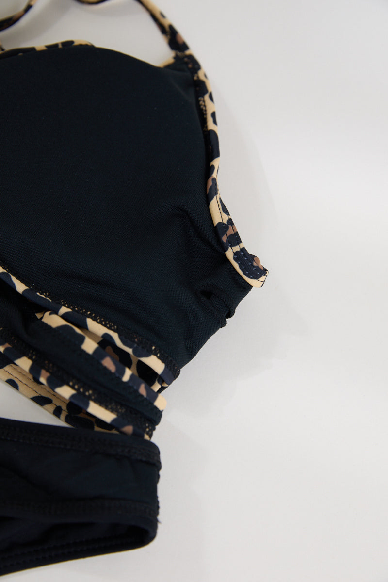 Sexy leopard printing padded backless cross sling tankini set