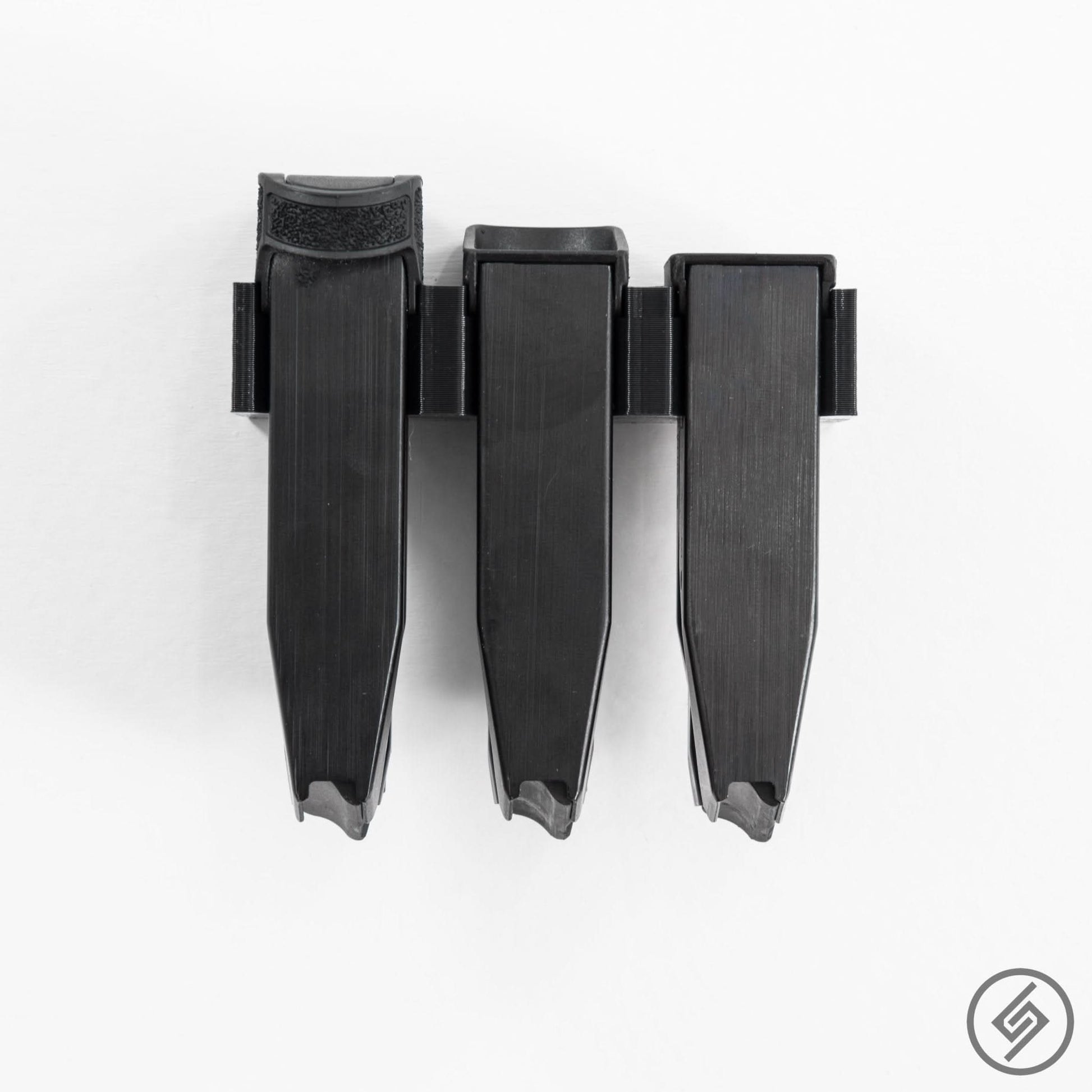 Organize your SIG P365 magazines with this precision-fit wall mount, designed for clean, secure storage of your 9mm carry mags. Perfect for EDC stations, gun safes, or compact gun wall setups, this mount keeps your mags within reach and ready for action. Proudly made in the USA for those who trust the P365 for everyday defense.