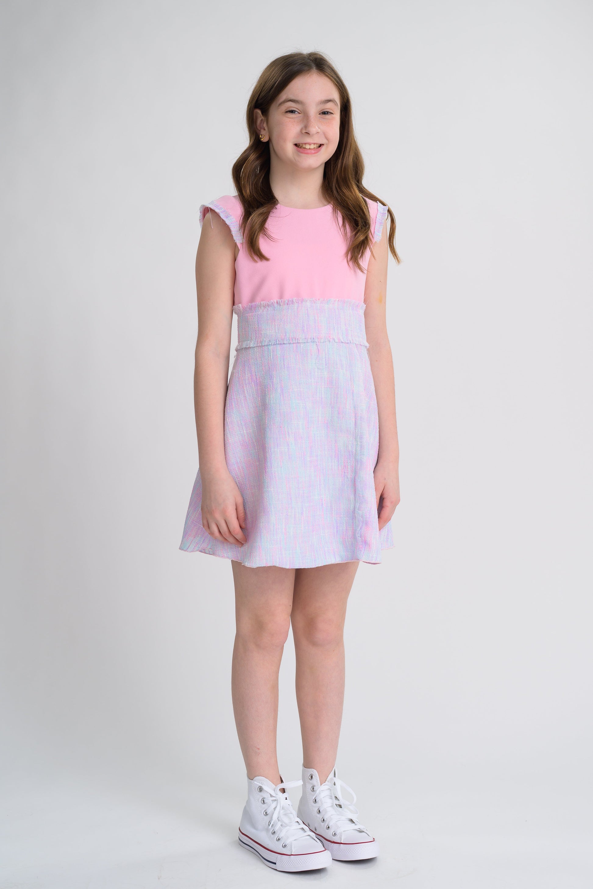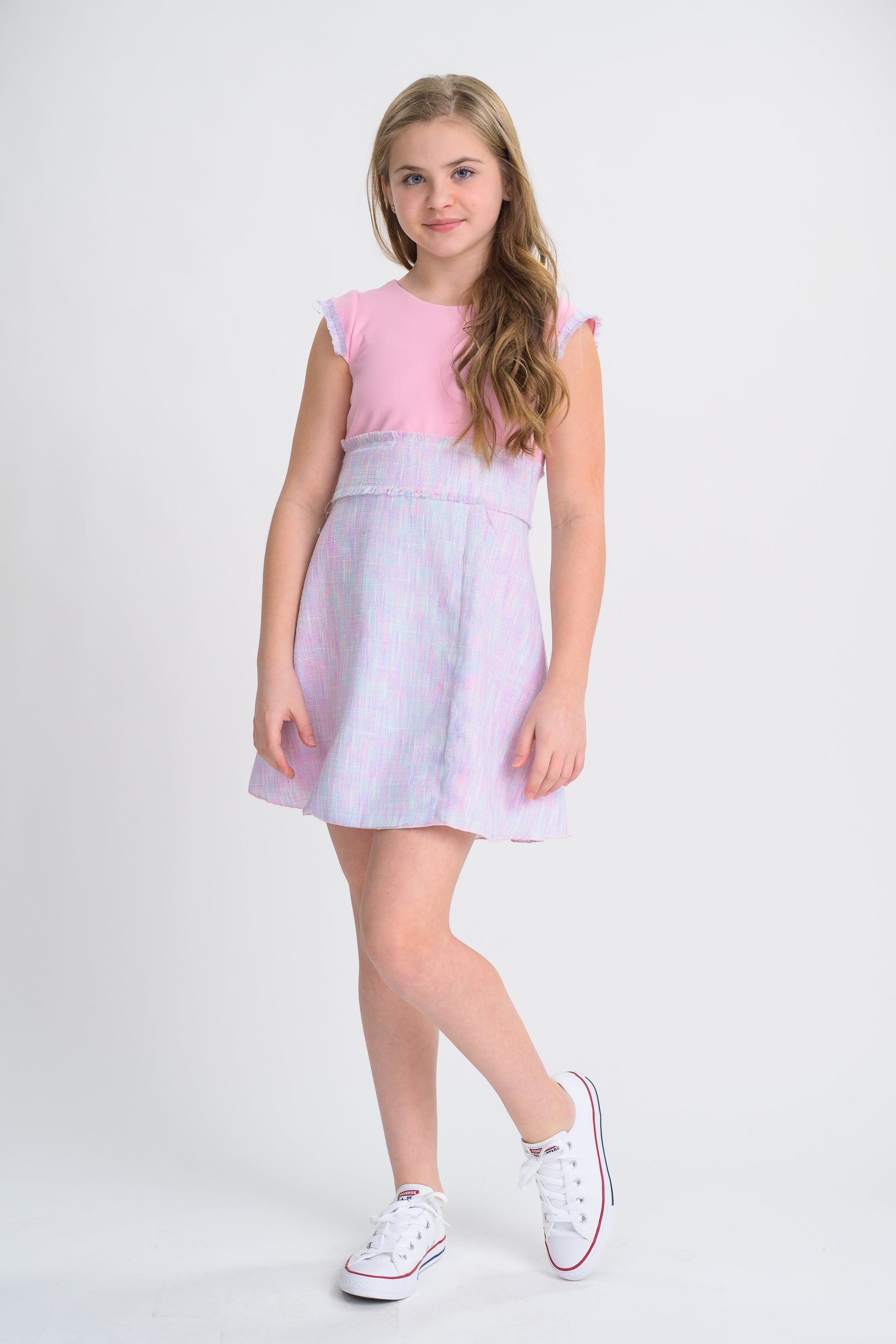 - Zoe "Skylar" dress features tweed skirt