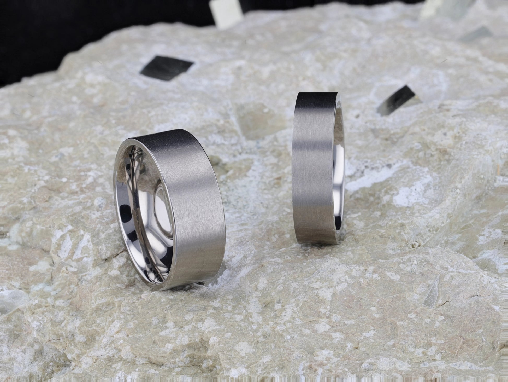 SOLAR Flat Profile Brushed Finish Men’s Titanium Wedding Band – 6mm & 8mm