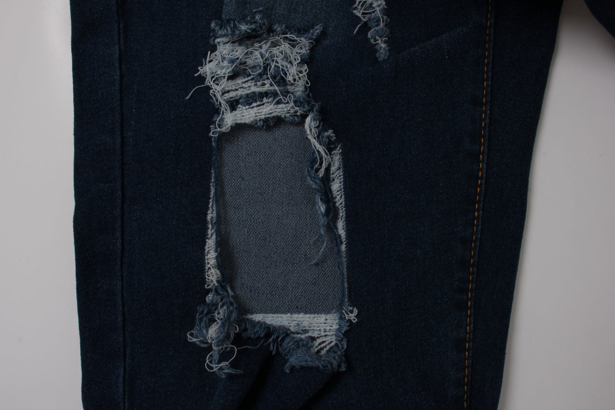 Solid color holes zip-up pockets new stylish casual straight jeans