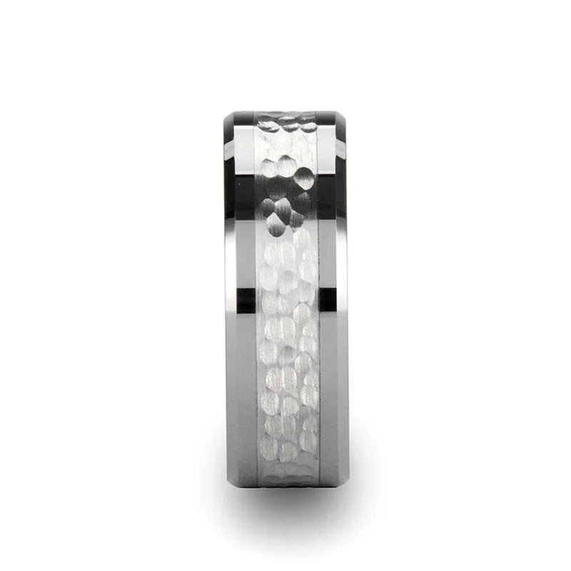 STANFORD Tungsten Ring with Hammered Finished Center - 8mm