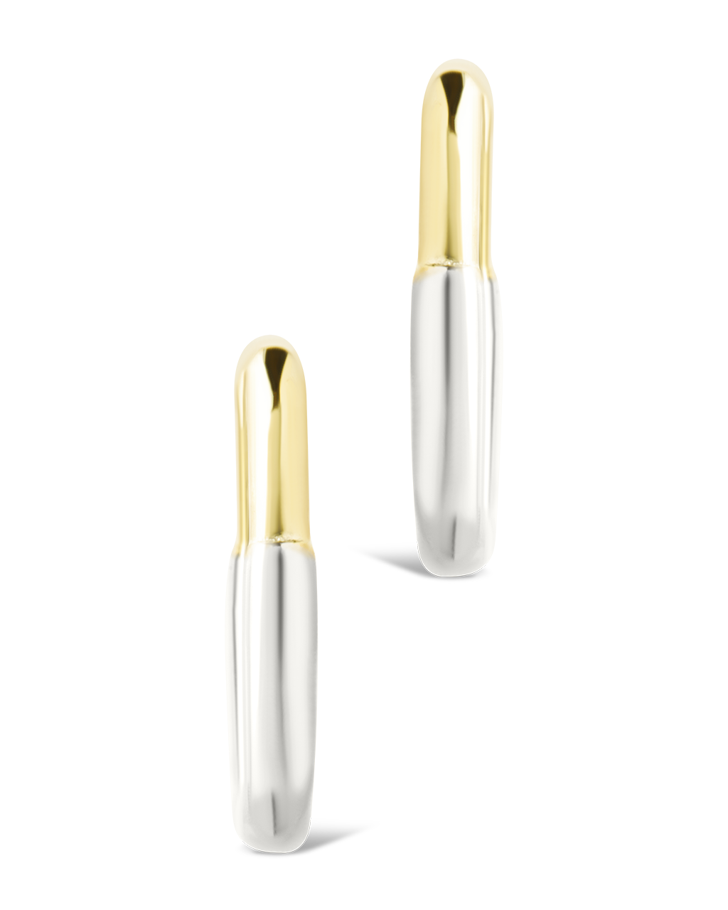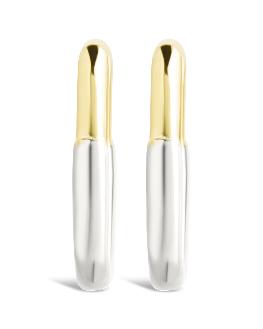 Streamlined and sculptural. These two-tone micro hoops blend gold and rhodium in a smooth, chunky silhouette—your new go-to for stacking or solo wear.