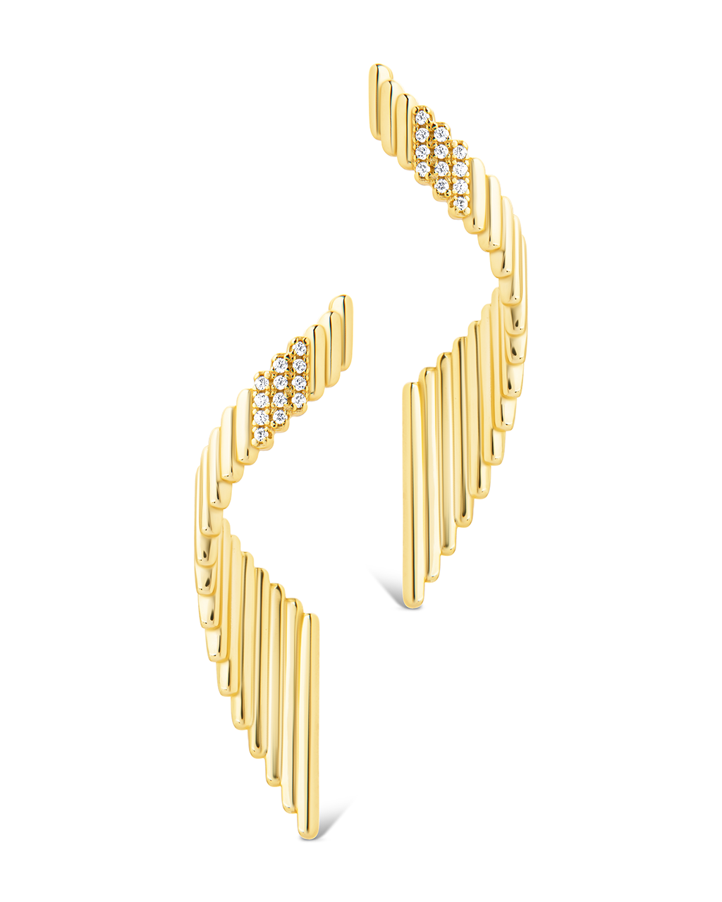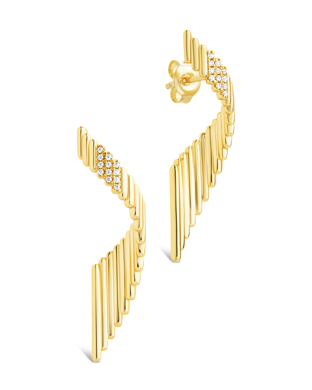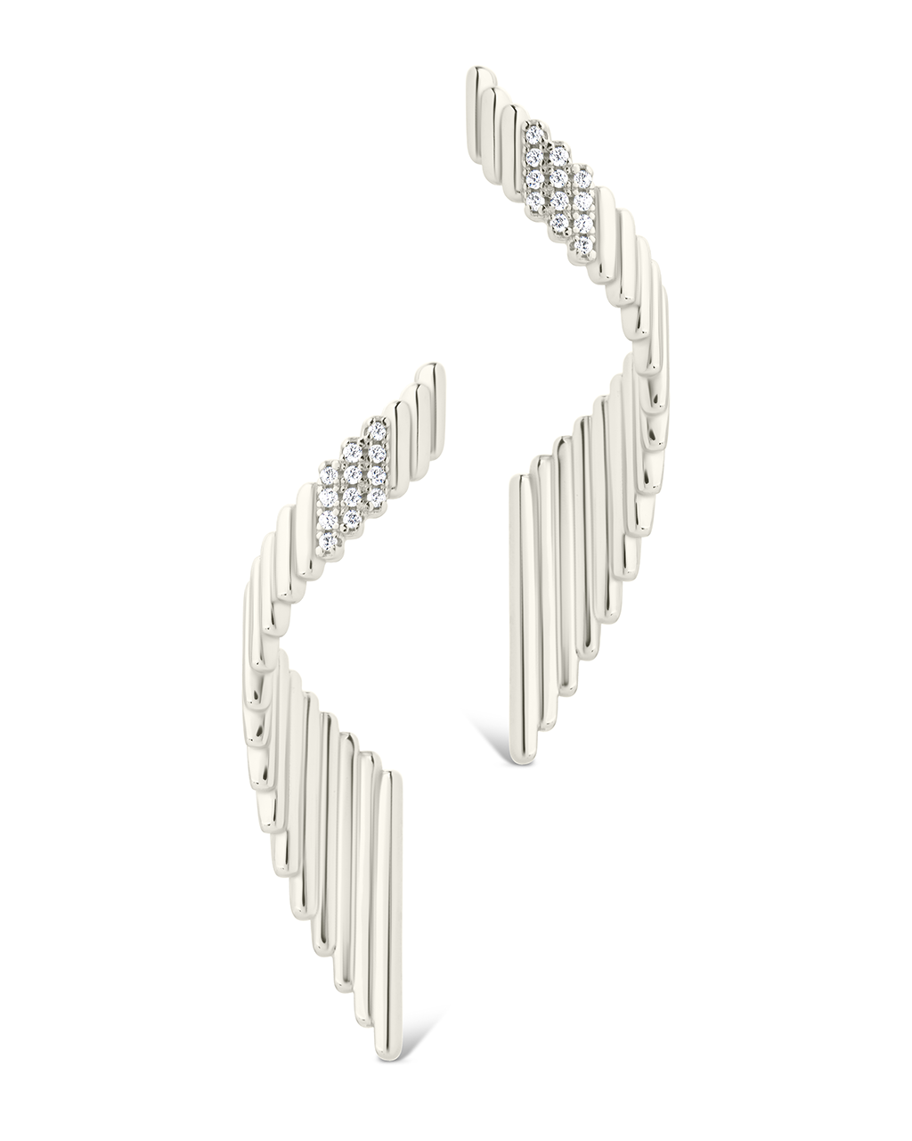 Features: 1.4" drop studs, 8mm wide, pave czs, post back, lead and nickel free