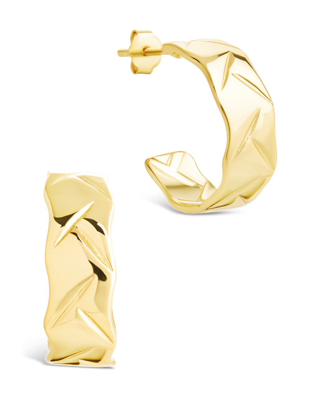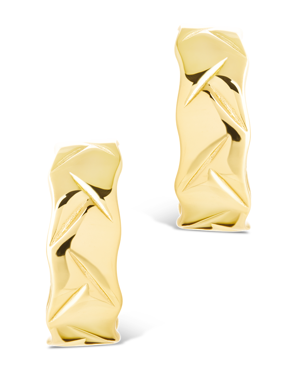 Angular and unapologetic. These textured hoops bring a sculptural edge to your stack—chunky enough to stand alone, striking enough to pair with sleek studs or a polished ear cuff.