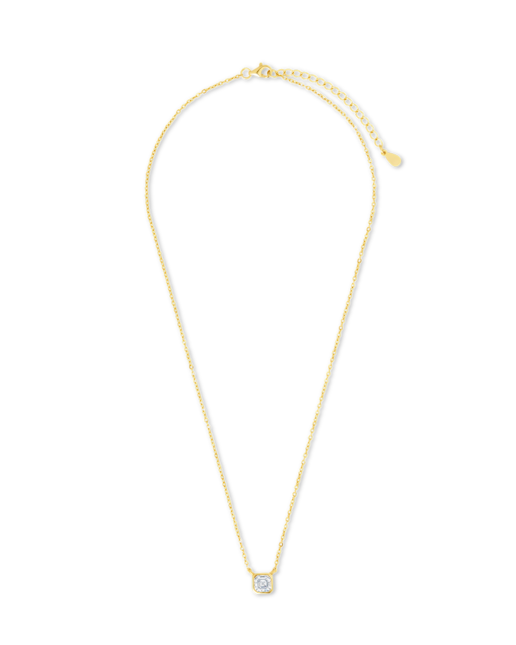 The Asscher Bezel Set Pendant is low effort, high impact. With a Hearts & Arrows CZ in a sleek sterling silver bezel, it’s the kind of pendant that does all the talking—so you don’t have to.