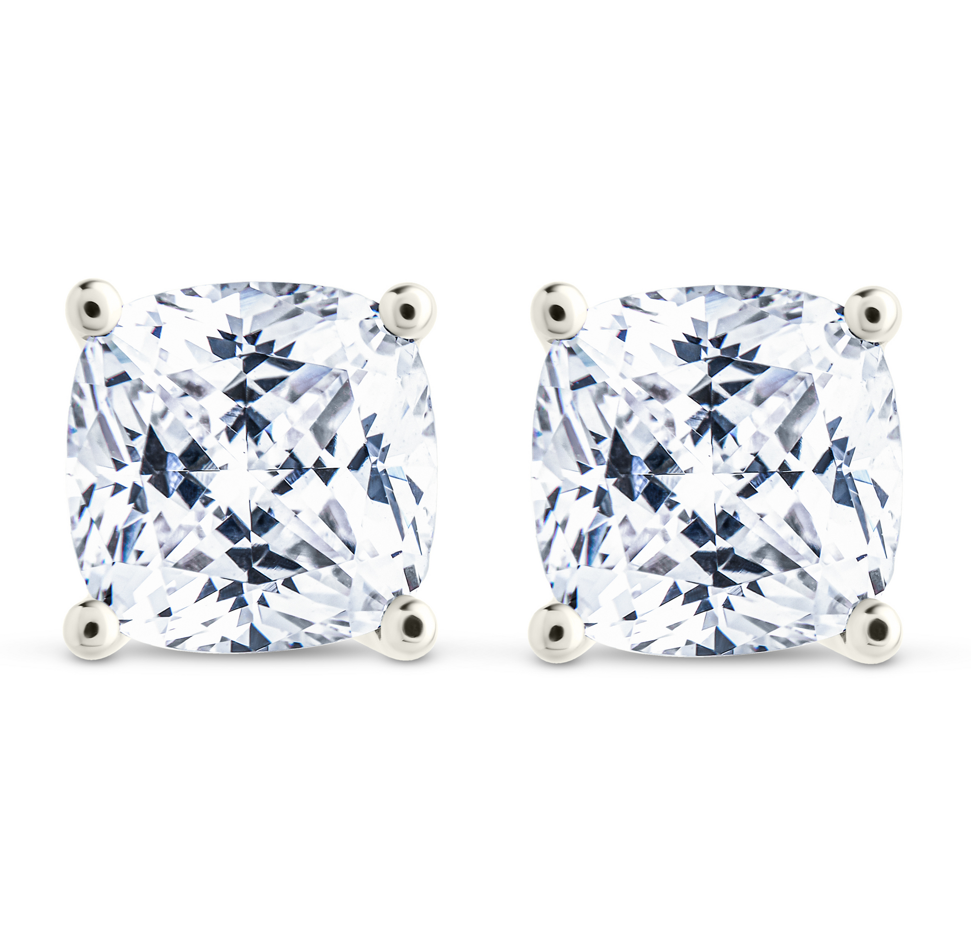 Sterling Silver Cushion Cut Prong Set Stud Earrings