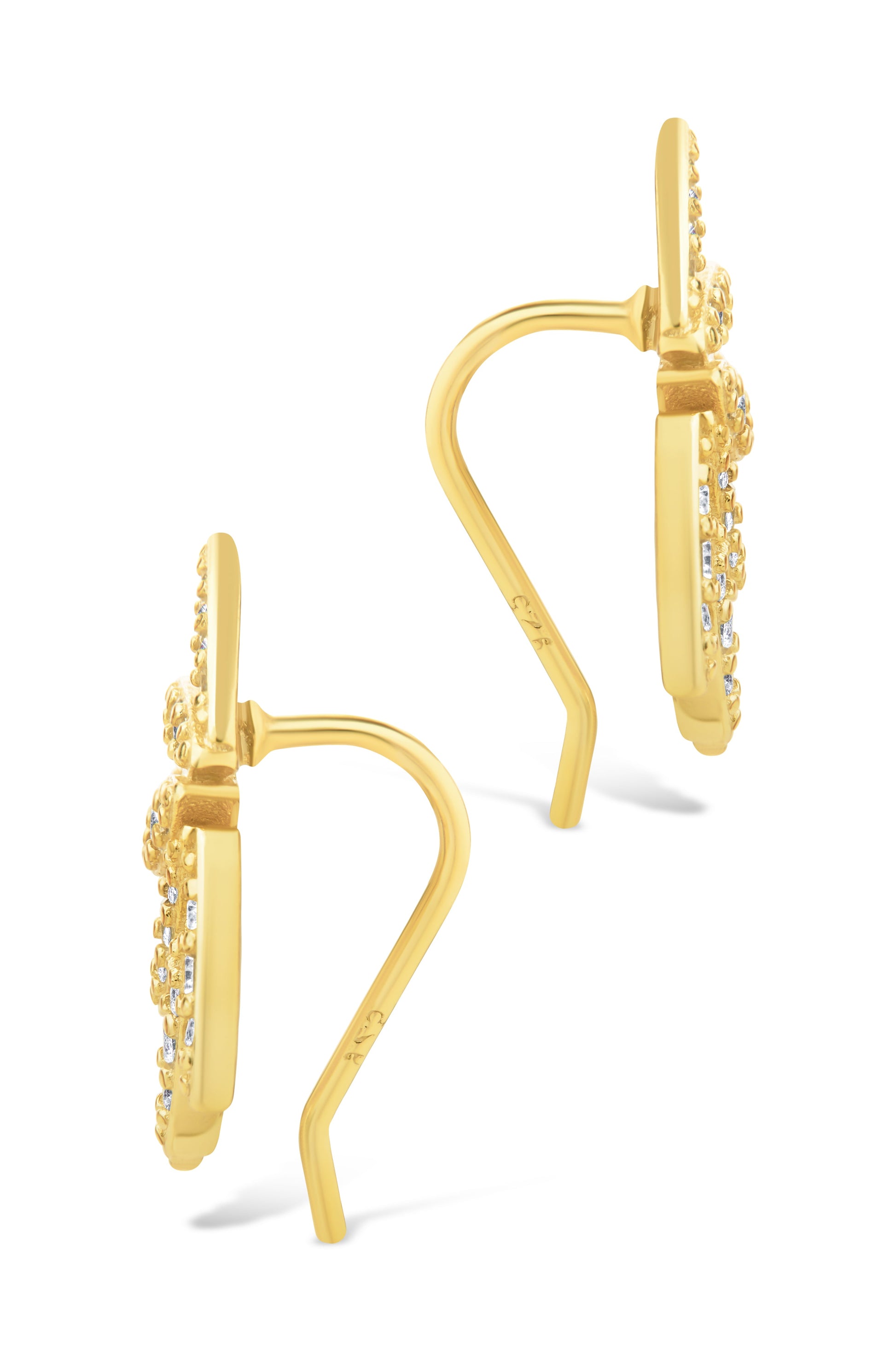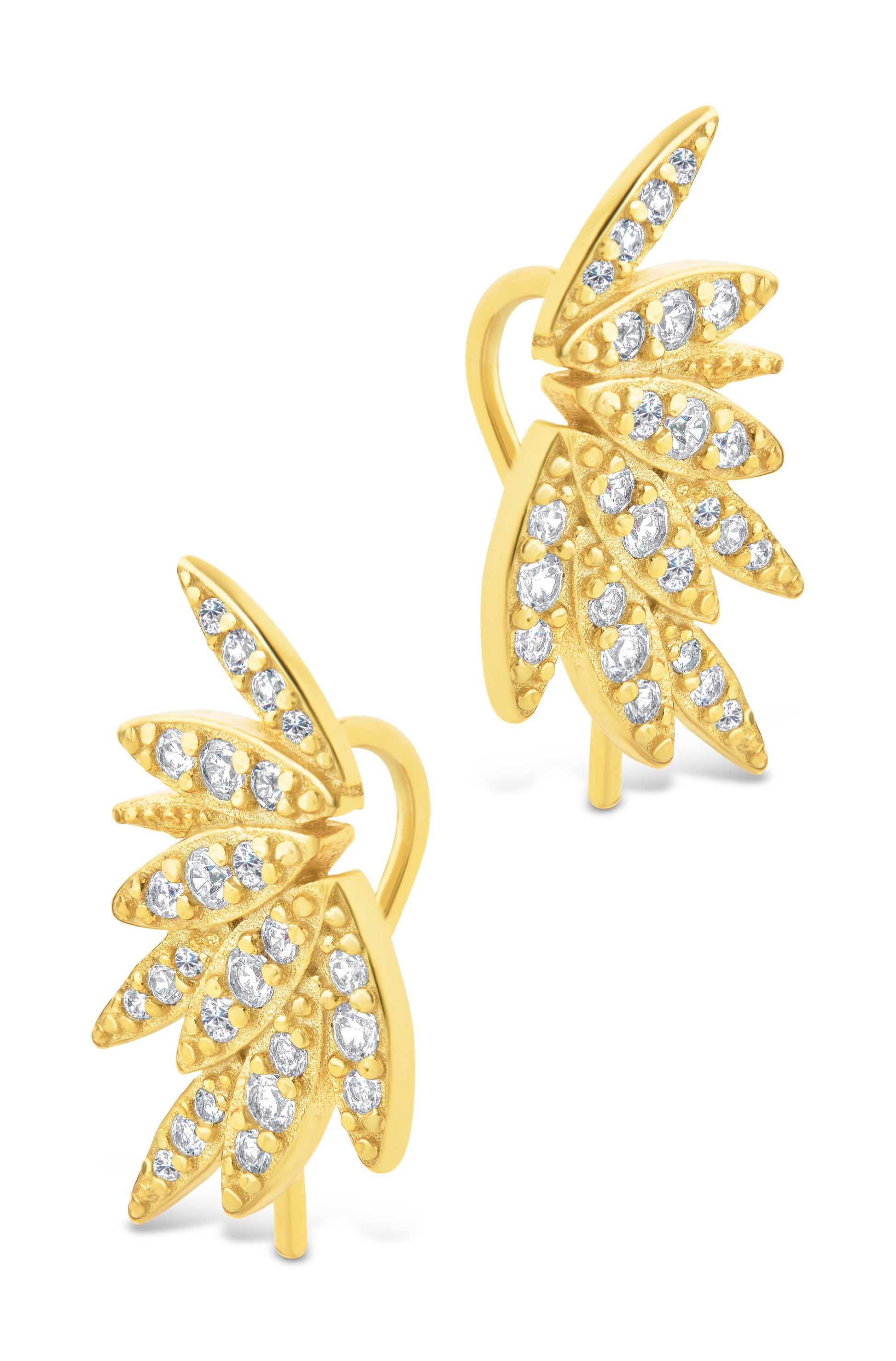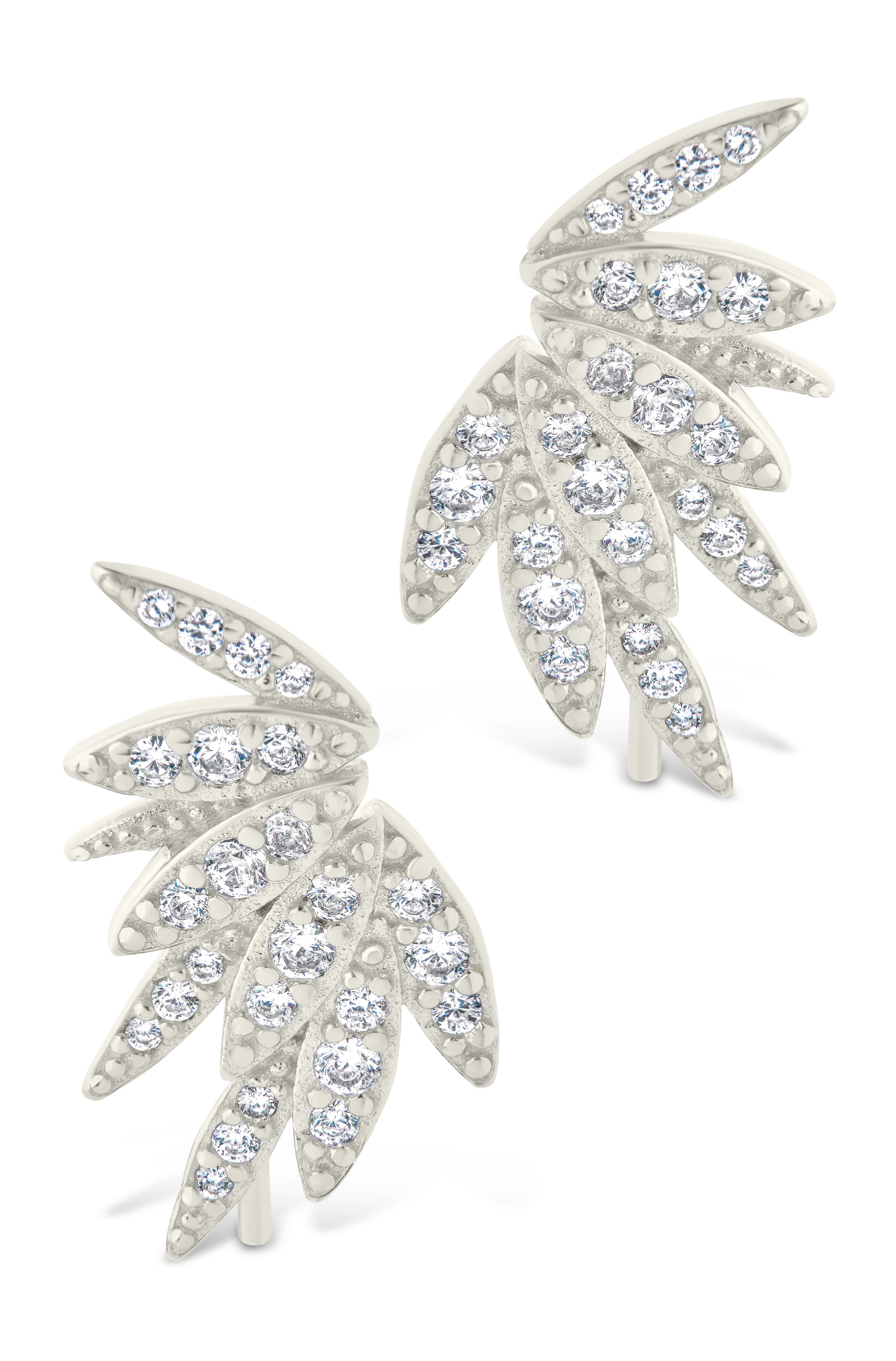 Features: Earring is 0.6" , organic leaf design, 1mm pave cz stones, curved post backing, lead and nickel free