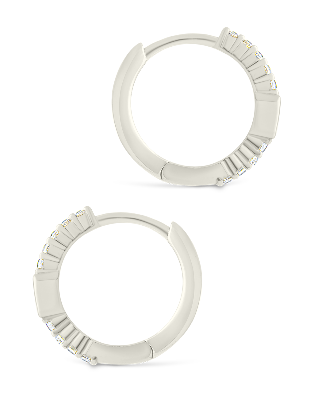 Sterling Silver Emerald Cut Bezel Set Huggie Hoop Earrings