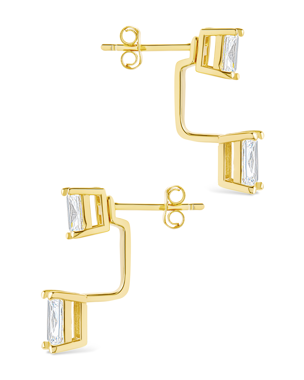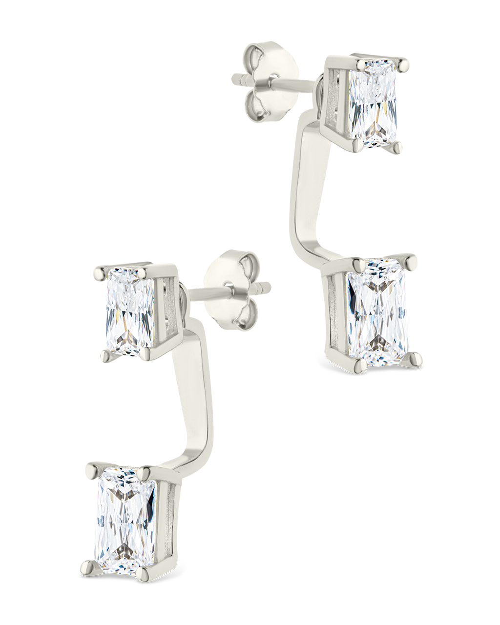 Double up. These sterling silver earring jackets feature two emerald-cut Hearts & Arrows CZs designed to sit just beneath the lobe. Add dimension without adding effort.