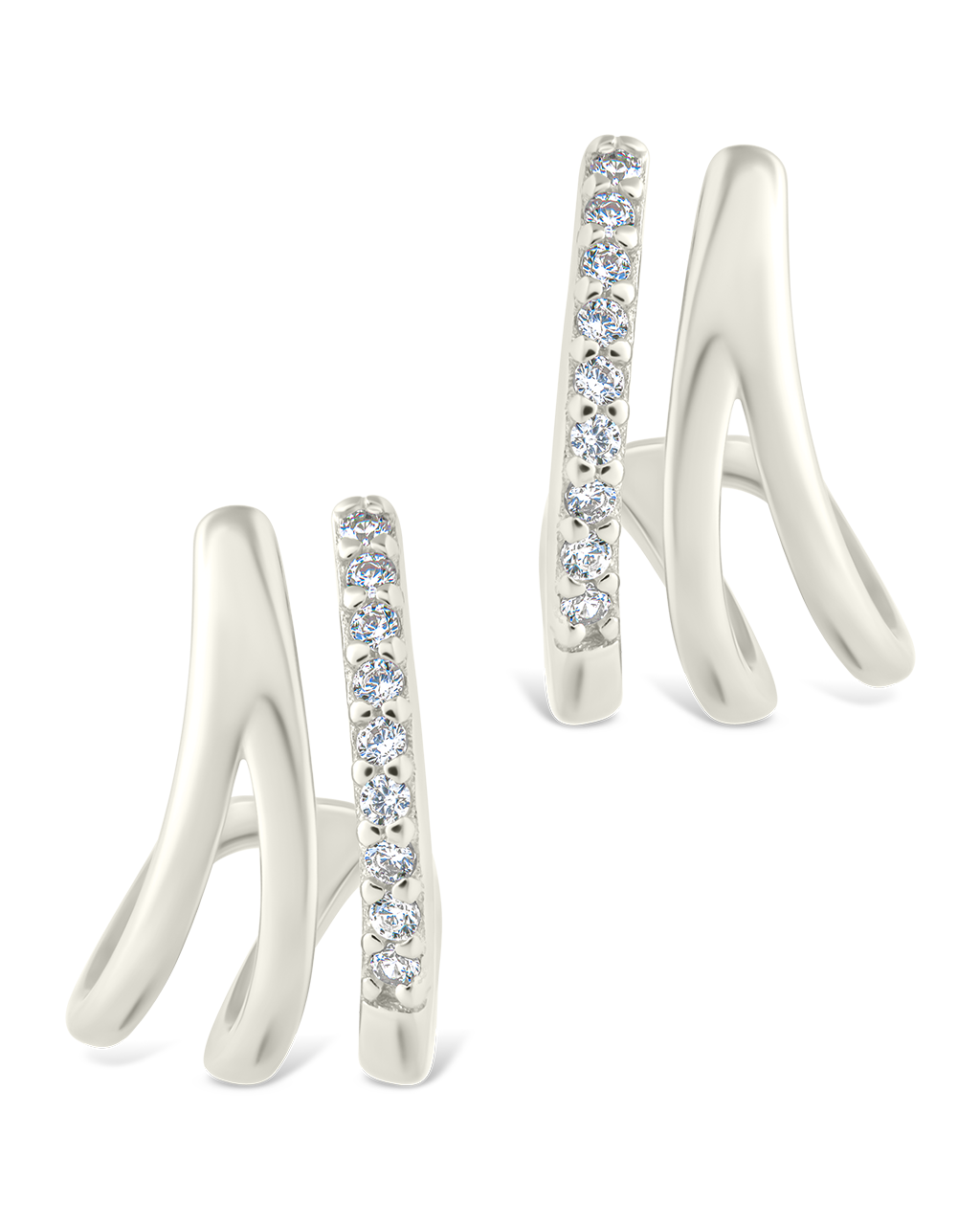 Unapologetically bold. These sculptural claw-inspired studs wrap the lobe with twin curves—one sleek, one CZ-lined—for a striking, ear-cuff effect without the fuss.