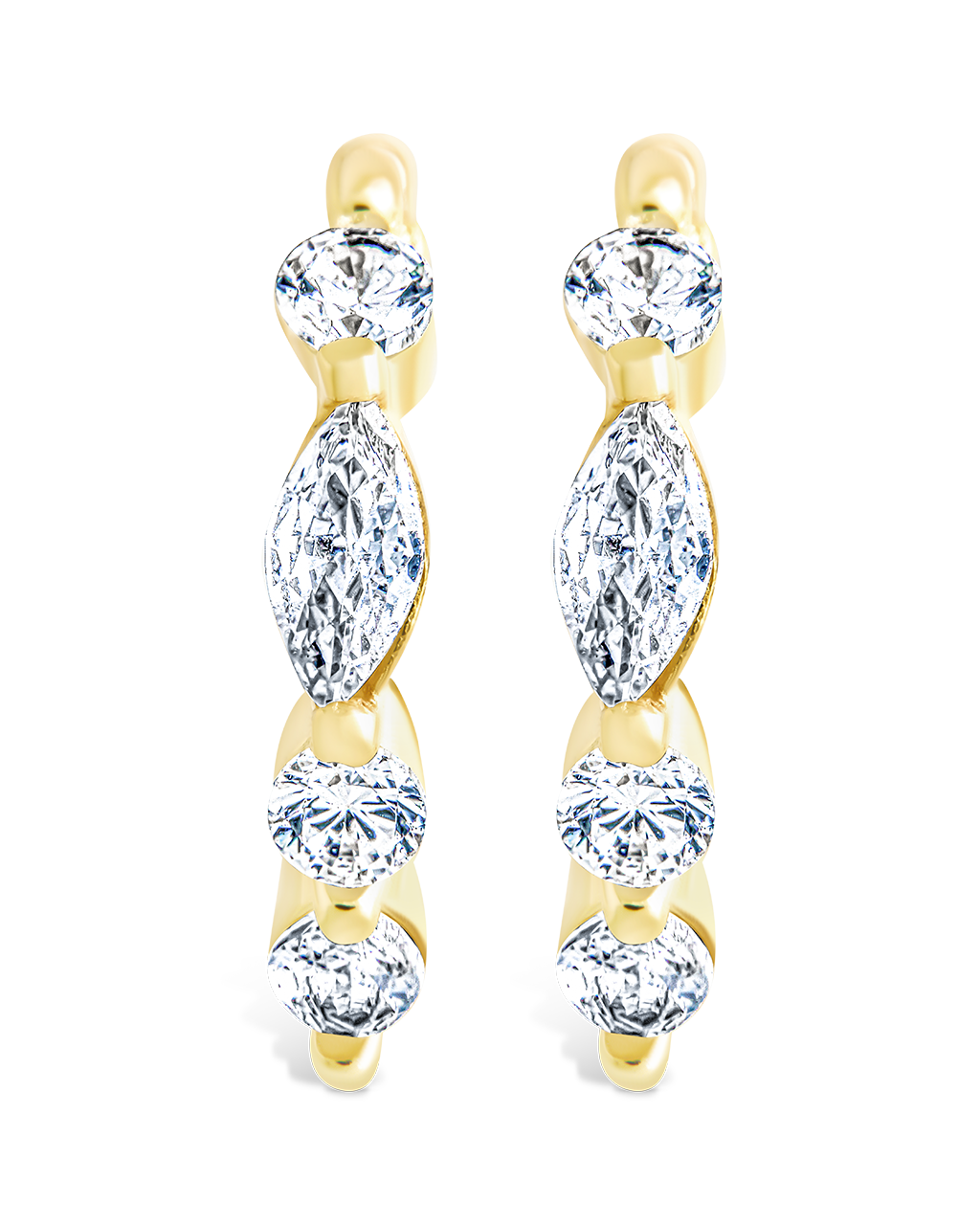 Delicate with a dash of drama. These micro hoops feature alternating marquise and round-cut CZs for a sculptural sparkle that’s made to mix or stand alone.