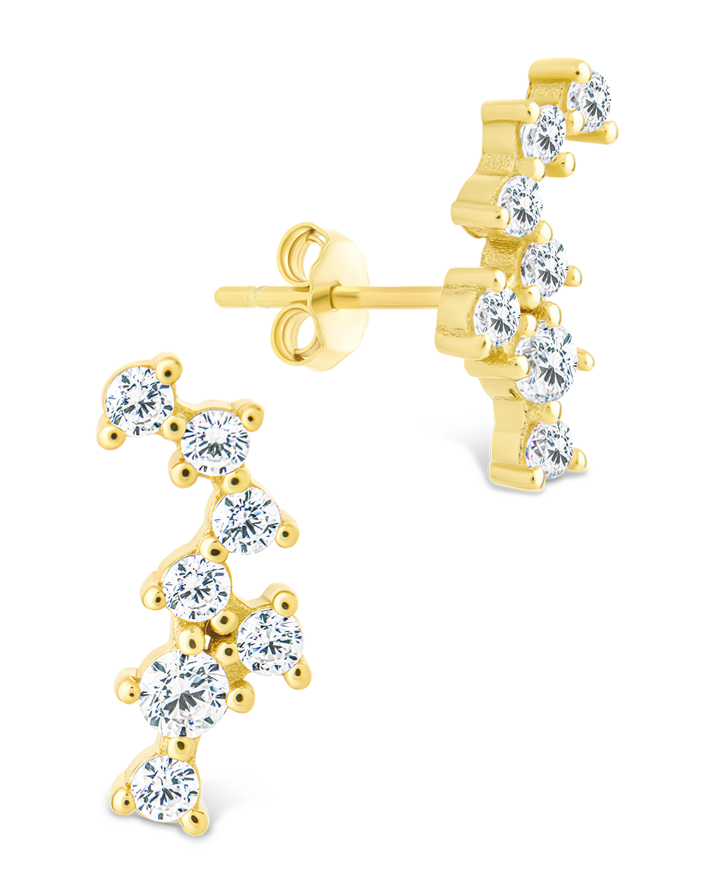 The Sterling Silver Round Cut Cluster CZ Crawlers are tiny, but they know how to make an entrance. With multiple round Hearts & Arrows CZs that go from bold to barely-there, they trace your ear with just enough edge to keep things interesting.
